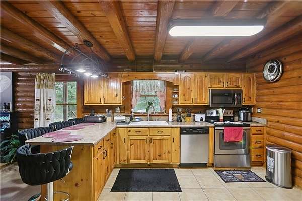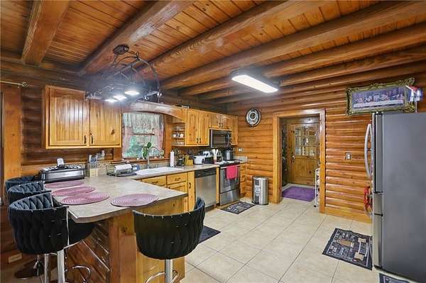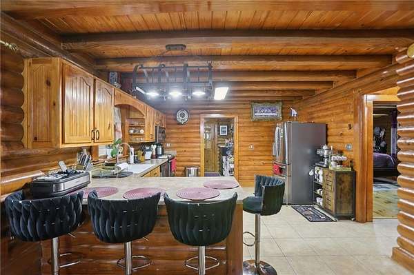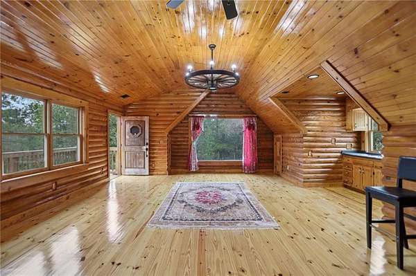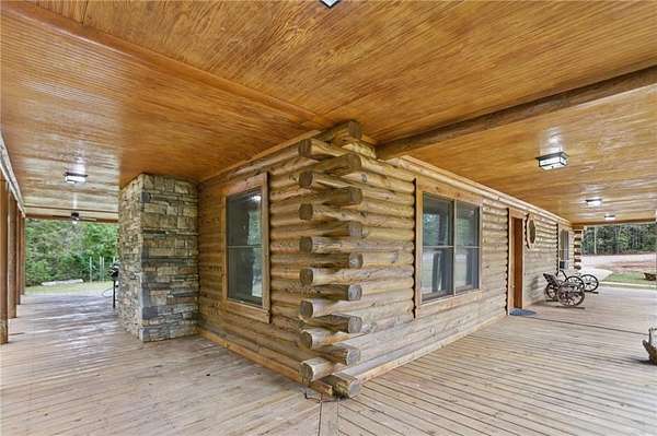 Private Retreat on 22.57 Acres with River Access Investor Friendly: Excellent potential for short-term rentals, private retreats, or future development - land may be subdivided for additional investment opportunities. Let the long, private entrance lead you to this stunning custom-built log home nestled on 22.57 acres of peaceful countryside. Enjoy river access to Jackson Lake, perfect for fishing, camping, and outdoor living. Inside, you'll find an immaculate wood interior, high ceilings, and warm rustic charm. This property features 3 bedrooms, 2 baths, and an in-law suite, a 4-car garage, a 25x30 workshop, and a 2-stall barn.. Experience country living at its finest with privacy, space, and endless possibilities - your slice of paradise awaits!