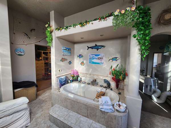 - Beamed Ceilings, Bookcases, Breakfast Area, Breakfast Bar, Cathedral Ceilings, Ceiling Fans, Cove Ceiling, Entrance Foyer, Family Dining Room, Garden Tub Roman Tub, Great Room, High Ceilings, Jetted Tub, Kitchen Island, Living Dining Room, Main Level Primary, Multiple Living Areas, Multiple Primary Suites, Pantry, Separate Formal Dining Room, Sitting Area In Master