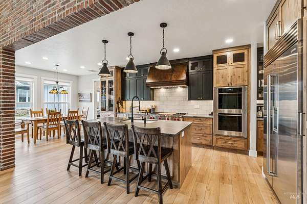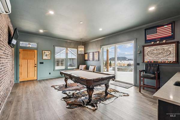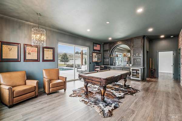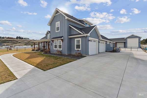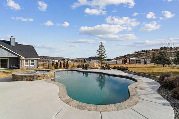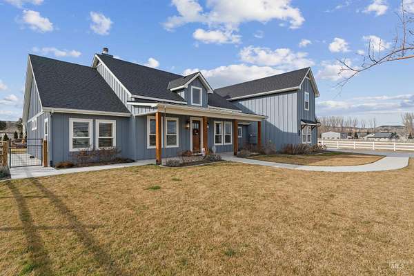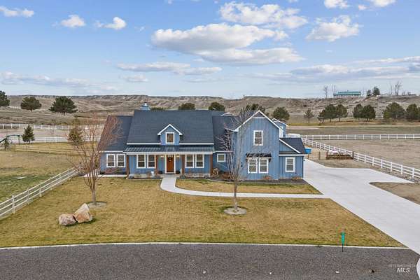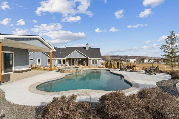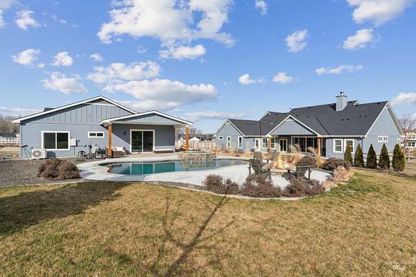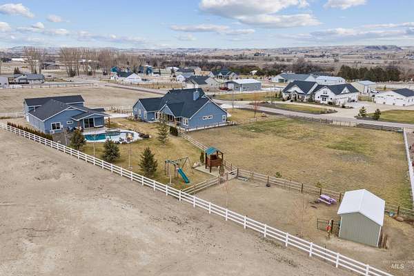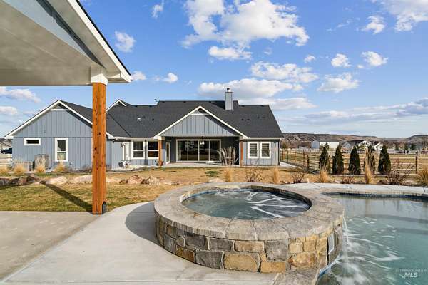 Luxury Custom Estate | 1.5 Acres | Pool House | Snake River Access Exceptional custom estate in desirable Hidden Valley Estates in the county area of Marsing. 1.5 landscaped acres, this property offers luxury finishes, flexible living space and private community dock & access to the Snake River. Main Res: 4-bedroom, 4.5-bath with 12' ceilings, expansive windows, and abundant natural light. Great room with wood-burning fireplace. Chef's kitchen has 48" Wolf rangetop & dbl ovens, 48" Sub-Zero fridge, 33" Kohler sink, knotty alder cab's, and quartzite counters. Laundry rm includes add'l 30" Sub-Zero fridge. LVP flooring throughout. Bonus room above garage w/ 3/4 bath-ideal for guests, office, or media room. Cust. 4" wood shutters, blackout window coverings in primary suite, whole-home Ethernet, permanent ext. holiday lighting, and oversized 3 car gar. with epoxy flooring. Pool House: Fully permitted pool house ideal for multigen living or ext'd stays. Has custom cabinetry, LVP flooring, Sub-Zero bev. fridge, BR w/ full bath. Att'd 2car garage w/epoxy flooring (currently gym) + RV bay. Outdoor Amenities: Resort-style backyard w/upgraded in-ground pool & attached 8' spa, fire pit, & cov'd patio. Fully irrigated & fenced lot w/fenced pasture, chicken coop, run-in shelter, and Kohler backup generator. Rare opportunity to own a luxury estate w/acreage, flexible living and private river access