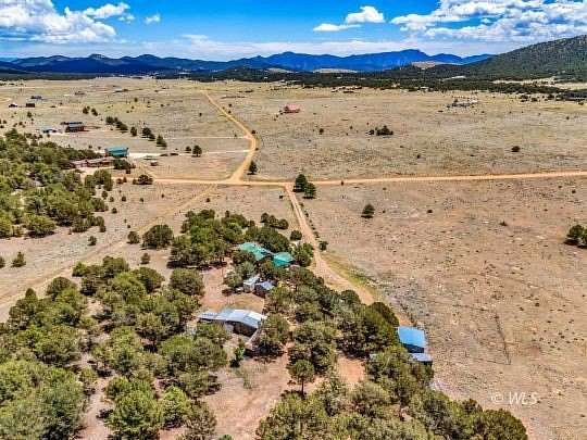 The time has come! You have found a LOG CABIN w/ great character. Throughout the cabin are little touches of antiques, such as STAINED GLASS WINDOWS IN ANTIQUE DOORS, a CLAW FOOT BATHTUB, & PAINTED SINK IN AN ANTIQUE VANITY!! Off the Kitchen/Dining Room there is a SUNROOM which produces great PASSIVE SOLAR HEAT! Step outside to enjoy the expansive grounds, ideal for outdoor activities, gardening, entertaining guests or simply taking in the spectacular mountain vistas. The fenced-in GARDEN area w/ a shed provides an ideal space for growing your own vegetables & flowers. Add'l amenities include a detached garage/workshop w/ attached carport, storage sheds, loafing shed, & 40' Connex-perfect for storing equipment, tools, or recreational gear. Surrounded by open grassy meadows & tucked in the pinon trees, which feels like a private escape w/ breathtaking view of the Sangre de Cristo Mountains. Relax & unwind in the HOT TUB while soaking in the panoramic mountain views. This property truly offers a rare combination of rustic charm, functional outbuildings, & natural beauty. Whether you're seeking a peaceful retreat or a versatile hobby farm, this property has everything you need!