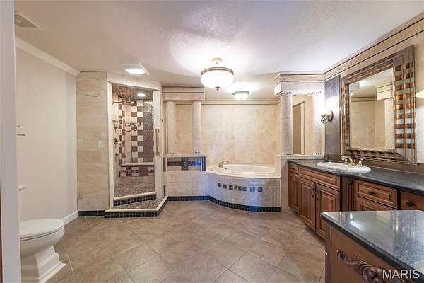 - Bookcases, Built-In Features, Ceiling Fan(s), Crown Molding, Custom Cabinetry, Dining/Living Room Combo, Eat-In Kitchen, Elevator, Granite Counters, High Speed Internet, In-Law Floorplan, Kitchen Island, Kitchen/Dining Room Combo, Laminate Counters, Open Floorplan, Separate Dining, Separate Shower, Soaking Tub, Tub, Walk-In Closet(s), Walk-In Pantry, Whirlpool, Workshop/Hobby Area