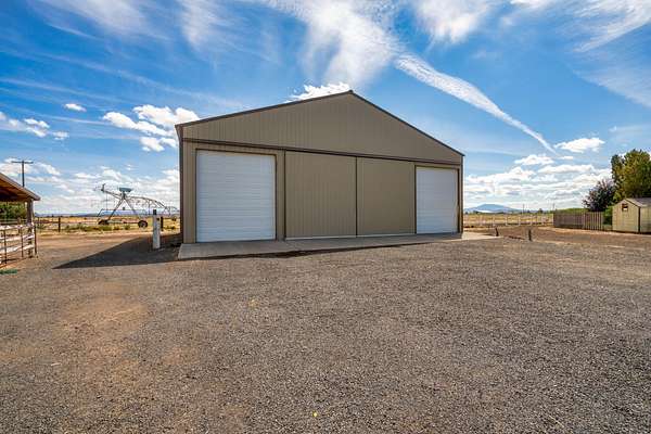 This beautifully maintained two-story home sits on a peaceful 35-acre farm just five minutes from town, offering the perfect balance of comfort, style, and rural charm. Recently painted and thoughtfully updated, the residence features a bright kitchen with modern finishes, a cozy family room, and a private office. Upstairs, the spacious primary suite includes a fireplace, spa-like bath, and serene Cascade Mountain views. Step outside to a landscaped yard with mature trees, a paved patio, soothing water feature, and a fire pit for evenings under the stars. Beyond the home, the property offers 35 acres of productive pivot-irrigated farmland ideal for hay or crops, along with three impressive outbuildings: a 2,668 sq. ft. shop with multiple bays, RV hookups, insulated workshop, and bath; a 2,328 sq. ft. utility building; and a 1,440 sq. ft. hay cover. This property blends modern comfort with country living and plenty of room to work, play, and unwind.
