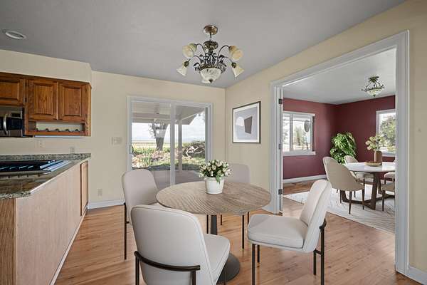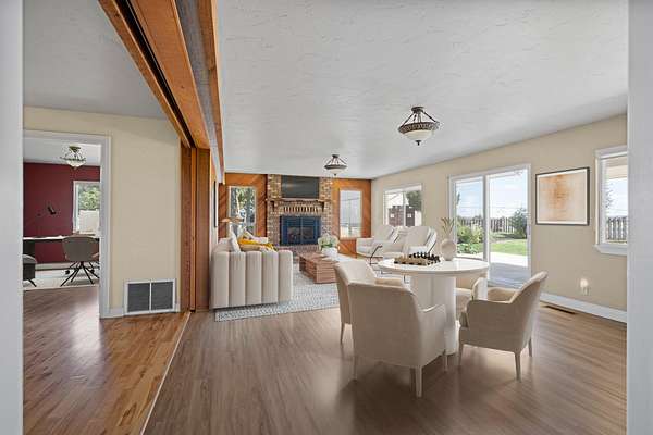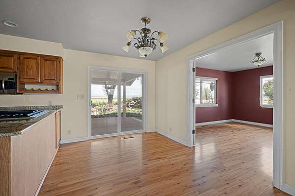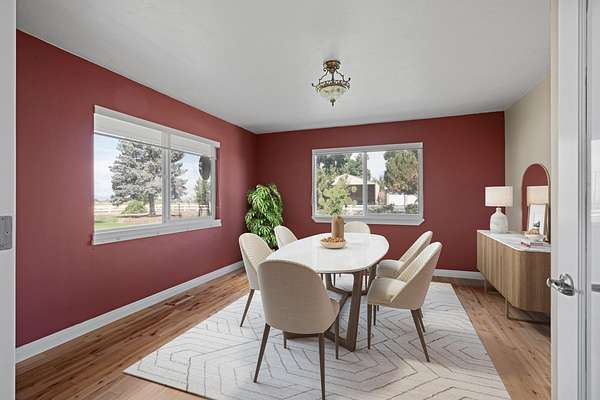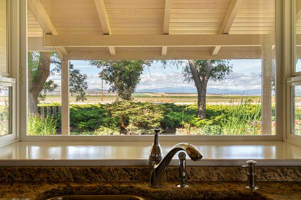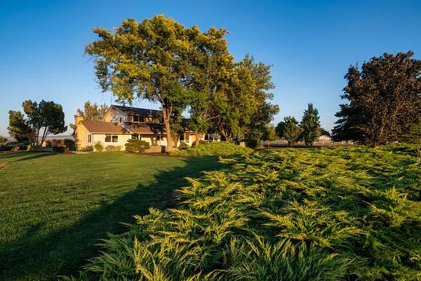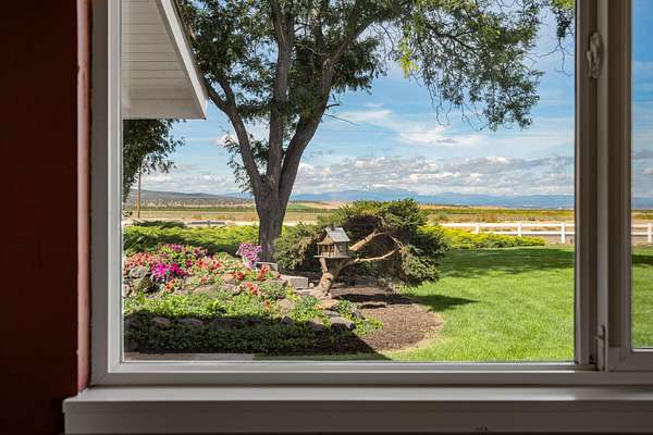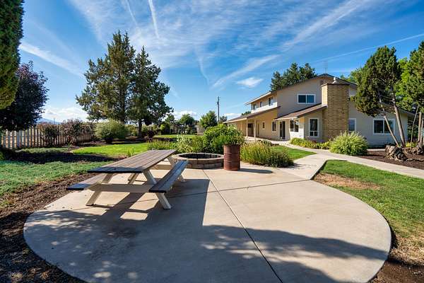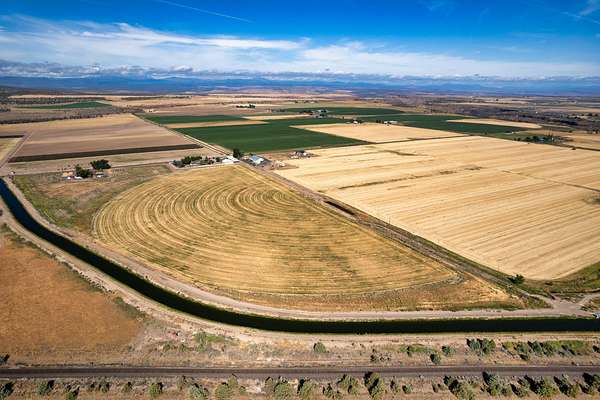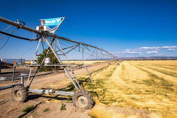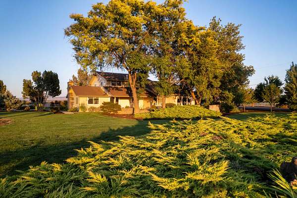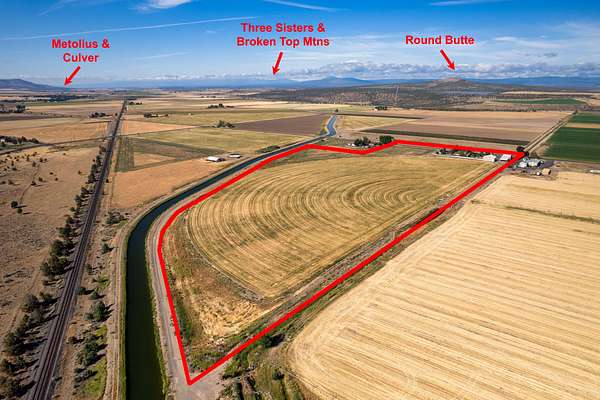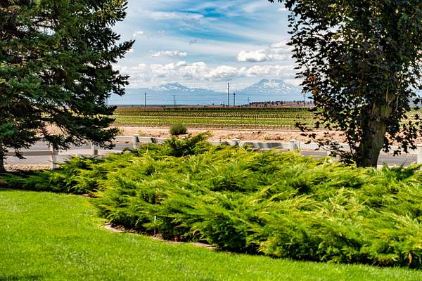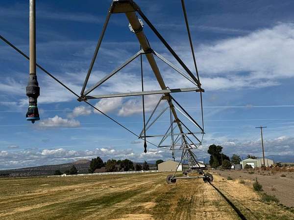 This 35-acre pivot-irrigated farm offers productive ground for hay or crops, stunning Cascade Mountain views, and a beautifully maintained home. Recently painted and thoughtfully updated, the 2-story residence features a bright kitchen with modern finishes, a cozy family room, private office, and an upgraded primary suite with fireplace, spa-like bath, and serene vistas. Step outside to a landscaped yard with mature trees, paved patio, soothing water feature, and fire pit for evenings under the stars. Three impressive outbuildings provide exceptional utility: a 2,668 sq. ft. shop with multiple bays, RV hookups, insulated workshop, and bathroom; a 2,328 sq. ft. utility building for storage or equipment; and a 1,440 sq. ft. hay cover. With room for productivity and space to relax, this property blends farm functionality with rural lifestyle appeal, all just five minutes from town.