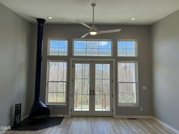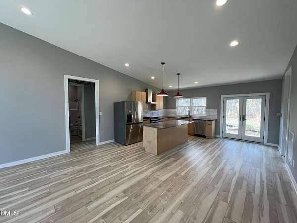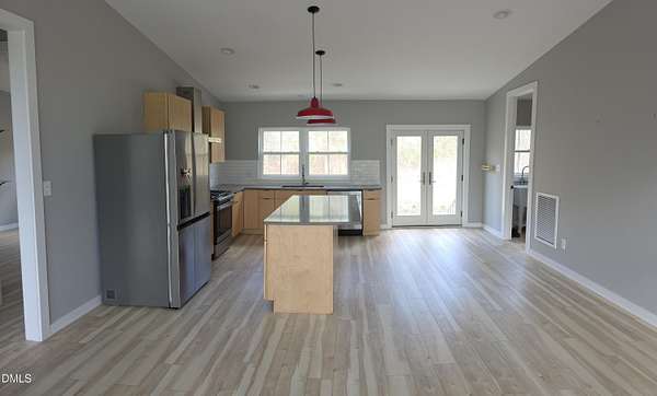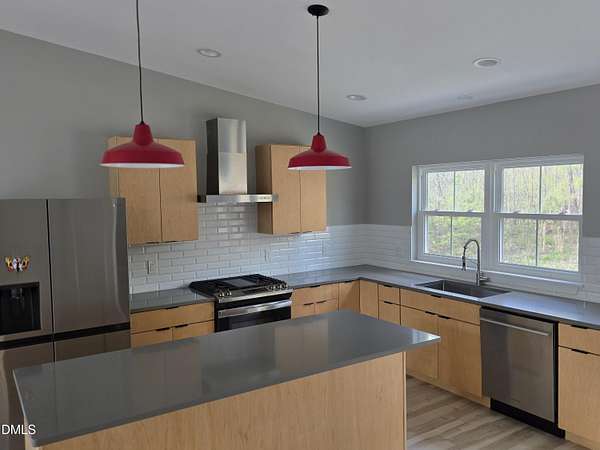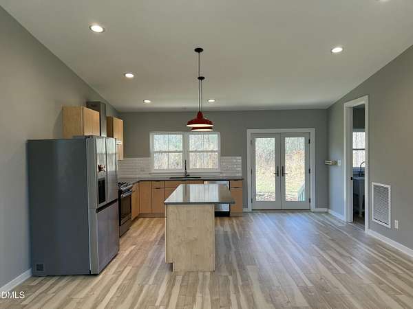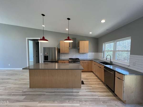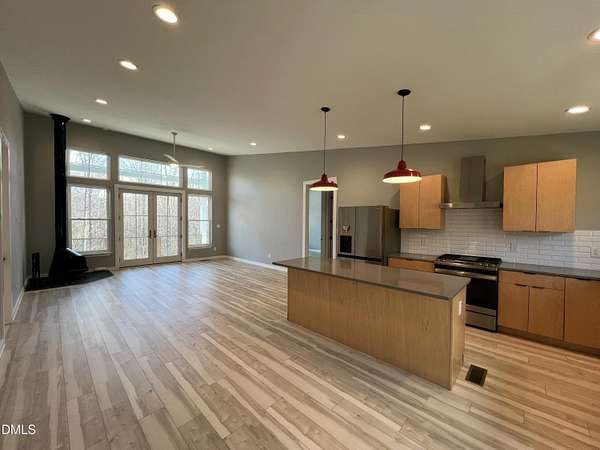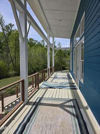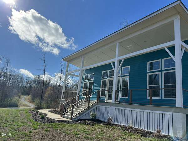 Midcentury modern ranch on 6+ private acres just minutes to Saxapahaw (built in 2022, no HOA). This 3BR/2BA custom home features soaring vaulted ceilings, 8-ft doors throughout, and walls of windows that bring the outdoors in. The open floor plan seamlessly connects the living room, dining area, and kitchen into one bright, expansive space with durable LVP flooring throughout the main living areas. Designed for both style and comfort, you'll love the striking Malm fireplace, expansive 46-ft covered porch, and thoughtfully designed layout. The spacious kitchen includes a walk-in pantry, plus a large laundry room for everyday convenience. Enjoy peaceful privacy with no HOA fees, while still being centrally located with an easy commute to Duke, UNC, RTP, and Greensboro. Built in 2022 with low Alamance County taxes--move-in ready.