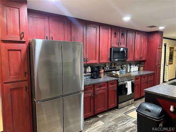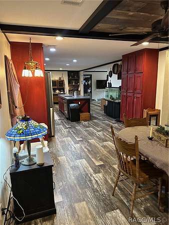 NEW TO MARKET!! This 3/2/1 2022 1680 SF home is nestled on a beautiful 1.73 acre FENCED parcel conveniently situated between Crystal River and Inverness right behind the Withlacoochee State Trail. Prominent features include split floor plan, luxury vinyl plank in common areas, large farm style kitchen with island, living room with electronic fireplace with beamed ceilings and wood accents, front deck/porch, principal bedroom ensuite with both shower and garden tub, 20' x 36' pole barn, and perimeter backyard fencing. No HOA fees and regulations! Bring your RVs, boats, toys, and interests! Call today to schedule a personalized tour!