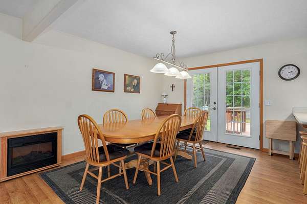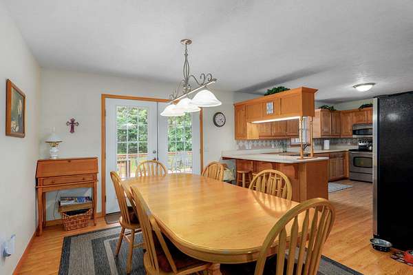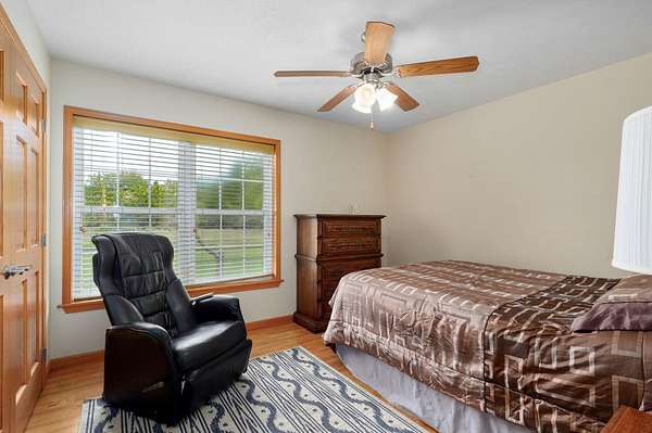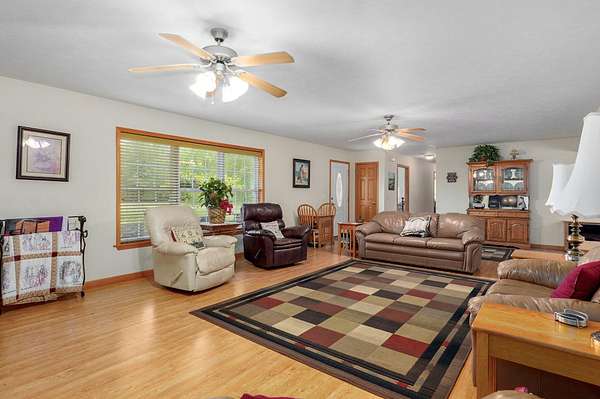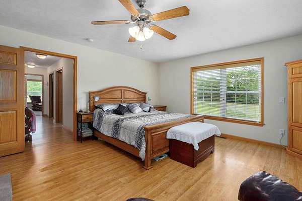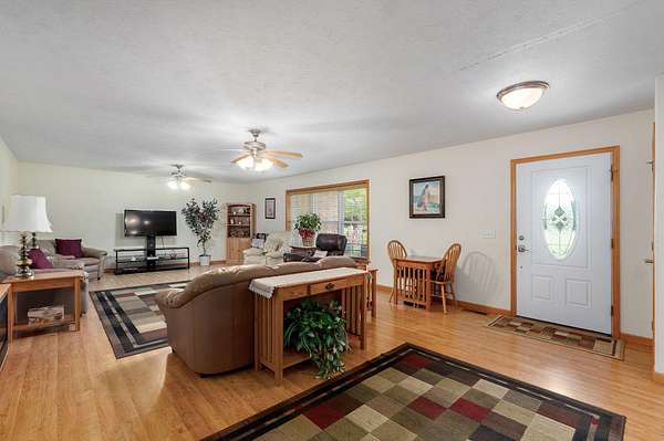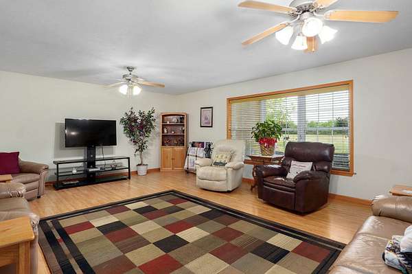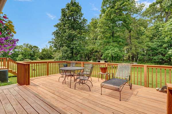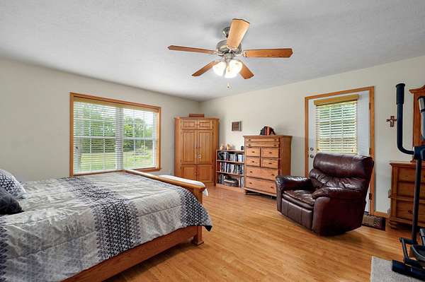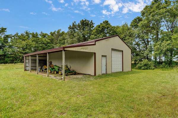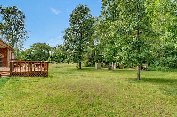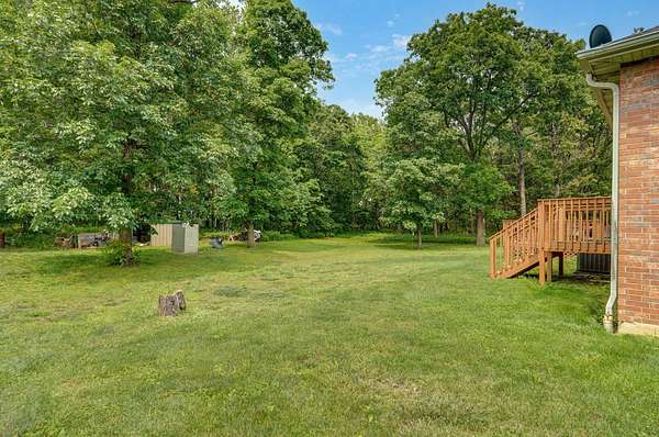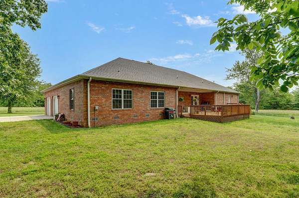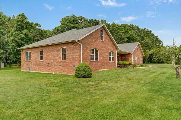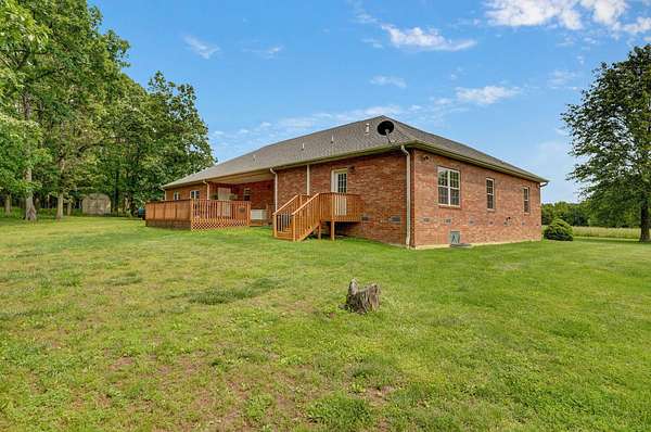 Two purchase options: 10 .21 acres for $639,000 and 15 acres for 689,000. Boundary maps available. Acreage is mostly level with mature trees. All brick 4 BR/ 3 BA home with in-law quarters, enormous bonus room ( 63x 29.5) upstairs and fiber internet--perfect for multigenerational households, hobby farming, or work from home. All living area is on the main level. Spacious kitchen with lots of cabinetry, an island, solid surface counters and 2 year old Bosch dishwasher . Primary bedroom en suite has 2 walk-in closets, dual vanities, walk in- shower and soaking tub. . Additional features include covered deck & patio, zoned dual heat system plus outside wood furnace and quick access to 1-44. A natural tree buffer and set-back location reduces road impact and provides privacy. Custom built! Lovely, well maintained property.