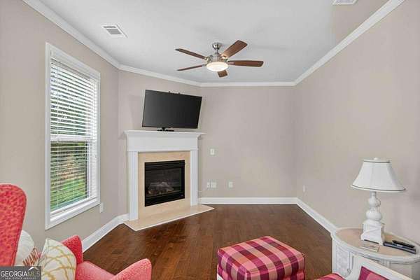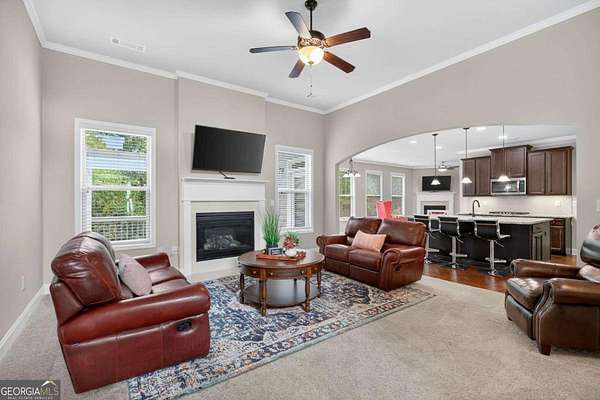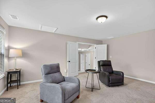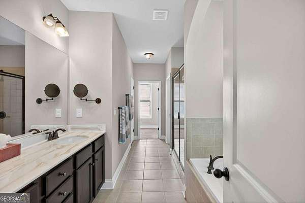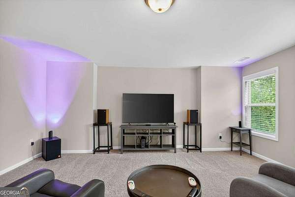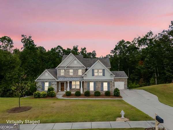 Beautifully cared-for move-in ready two-story Craftsman home located in a sought-after swim/tennis community Holly Springs, featuring a playground and clubhouse. A striking two-story foyer with an arched opening welcomes you inside and leads to the formal dining room, accented by an elegant octagon ceiling and classic judges paneling. Thoughtfully designed for both style and everyday comfort, the open floor plan is ideal for entertaining and daily living. The spacious kitchen is a standout, offering 42" cabinets, granite countertops, stainless steel appliances, a large island with bar seating, and a walk-in pantry. It opens effortlessly to the expansive family room with a cozy fireplace, along with a separate den featuring its own fireplace which is perfect for multiple gathering spaces. Step outside from the kitchen or den onto the generously sized, freshly painted deck overlooking a private backyard-great for hosting or unwinding. The main-level owner's suite provides a peaceful retreat with a spa-like bathroom complete with a tiled shower, soaking tub, and double vanities. Upstairs, you'll find a private guest suite with its own full bath, plus two additional bedrooms that share another full bath. A versatile media, or bonus room offers flexibility for a home office, playroom, or theater space. Additional highlights include a main-level laundry room, in-wall pest control system, and a spacious three-car garage with an extended driveway. The full, unfinished walkout basement is stubbed for a bathroom and additional rooms offers 1,871 square feet of potential for future customization. Beautiful landscaping and strong curb appeal round out this impressive property. Conveniently situated near I-20, shopping, dining, and just minutes from Hartsfield-Jackson Atlanta International Airport, this home combines modern comfort, functional design, and resort-style amenities in a prime Douglasville location.