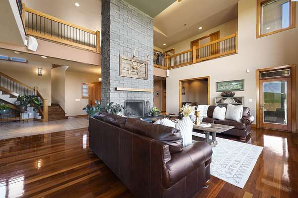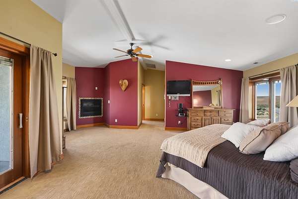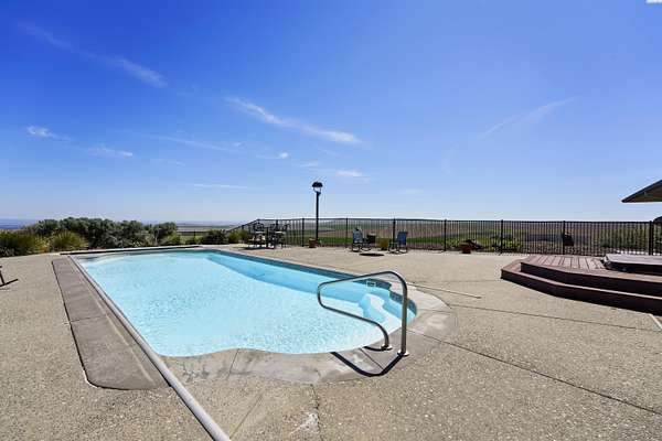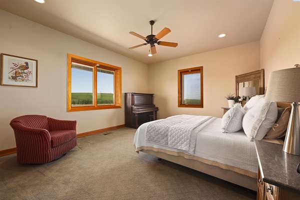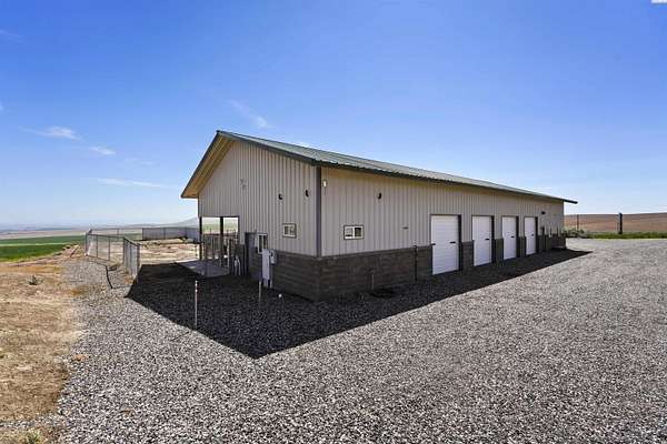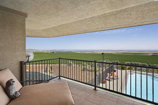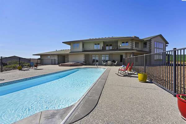 MLS# 284086 Discover Elevated Living at its Finest. Nestled atop the picturesque Horse Heaven Hills, surrounded by majestic wheat fields, this contemporary masterpiece offers unparalleled privacy and panoramic views. Envision waking up to the dramatic vistas through impressive Pella windows, where every day is graced with breathtaking sunrises, sunsets, and a daily parade of wildlife.Step through custom copper-inlaid doors into a world of luxury. The main level boasts a primary suite with a private entrance, while the upper floor hosts a second suite with a balcony and propane fireplace. Experience effortless accessibility with a three-stop elevator connecting all floors.Culinary dreams come alive in the spacious kitchen, featuring custom cherry cabinetry and premium stainless appliances, alongside a sophisticated wine bar. Enjoy cinematic experiences in the private media room or unwind in the massive den with exterior access. An open library with custom-built-ins overlooks the great room, adding a touch of elegance.Beyond the main residence, the estate boasts a 2,800 sq ft basement recreation area, heated fiberglass pool, hot tub, cabana, and a separate 1200 sq ft 2 bed 1 bath guest house. A 4,800 sq ft shop with 6 garage bays complete with bathroom and workshop. In the middle of approximately 50 acres of income-producing (leases in place) wheat fields complete this haven.Additional features include 7 bathrooms (5 in the main house), an automated wrought iron gated entrance, a security lighting system, geo-thermal floor heating, Kinetico water treatment systems in all buildings and more--all designed for the ultimate in luxury and comfort.Escape the city and embrace serenity. Schedule your private tour today to witness the harmony of nature and luxury living.