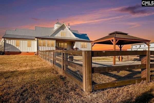 This exceptional modern custom farmhouse, built in 2022 sits on 24 picturesque acres and offers the perfect blend of luxury and comfort. Open concept design, shiplap lined entry w/cupola. Features formal dining, spacious living room w/shiplap surround on gas log fireplace, and stunning gourmet kitchen w/barrel wood ceiling, quartz ctrtps, copper farmhouse sink, 2 dishwashers, shiplap hood w/pot filler, cozy breakfast nook, large walk in pantry. Pvt primary suite offers his/her walk in closets, luxury bath w/imported encaustic patterned tile, quarts ctrtps, tiles, walk in shower, toilet closet, soaking tub, private porch access. Retreat room/office on primary side also ideal for nursery or playroom. 2 addt'l bdrms down with shared bath and a half bath dwnstrs. 4th bdrm upstairs w/ walk in attic. Spacious laundry that leads to breezeway/garage. Cvrd front porch for sunset views, cvrd back porch for sunrise views. 60X40 metal bldg w/power, fully fenced, adorable greenhouse and chicken coop. Small pond is also on site ready for a restoration. Perfect for your homestead! Minutes from quaint small towns of Ridge Spring, Ward, Johnston, Edgefield and only 30 min to Aiken 40 to Augusta and 50 to Columbia via I-20. Disclaimer: CMLS has not reviewed and, therefore, does not endorse vendors who may appear in listings.