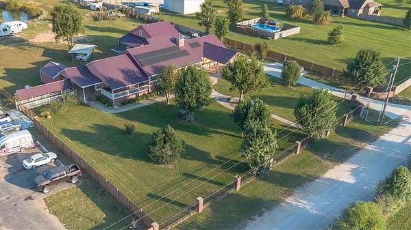 Are you looking For a suburban house-Ranch style with acres and a big metal/shop building for your business, and out of the city but a few minutes from it? well, look no further. Let me present you 5475 Colvin Pl, this mansion with 7 BD Rm (2 masters) 1 Loft (total 8 rooms), 4 complete Bathrooms (2 master walk in showers) 1 half Bath, 2 full kitchens, a living room, dining rm besides a breakfast rm, exercise rm, a full laundry rm and not to mention 3 car garage, besides 2 cart port garage (5 cars total and plenty driveway. The cherry on top of the cake is a Blast Solar Pannesl that covers the 4264 sq/ft with an electric bill of only $26 / month. But wait, all of these is sitting on 5 acres property wich include the +- 2.5 acres commercial business permitted shop with 13 parking spaces an office bulding( 2 Rm) and 2 extras small detached garages. The business has hours of operations of 6am - 7pm bus hrs M-F (buyers to check with county for their new business). After work you can go to Hickory Creek Marina Beaver Lk.