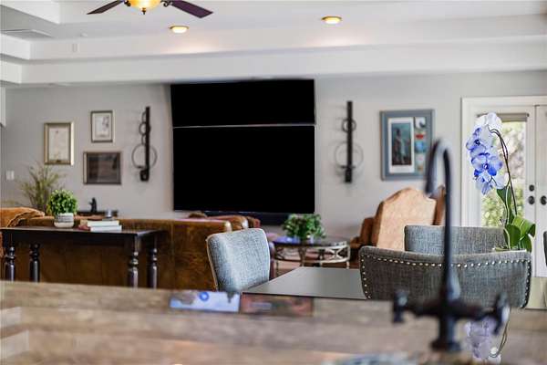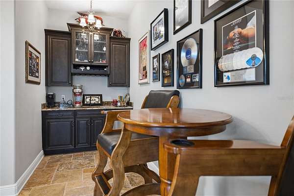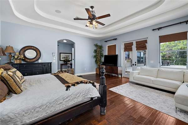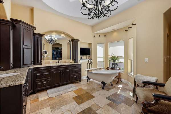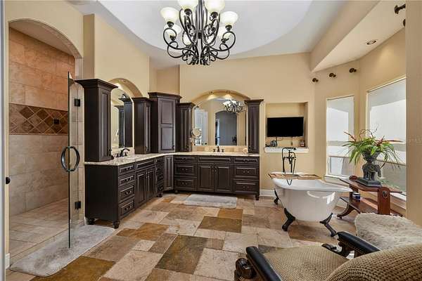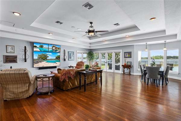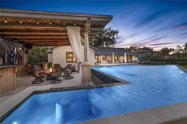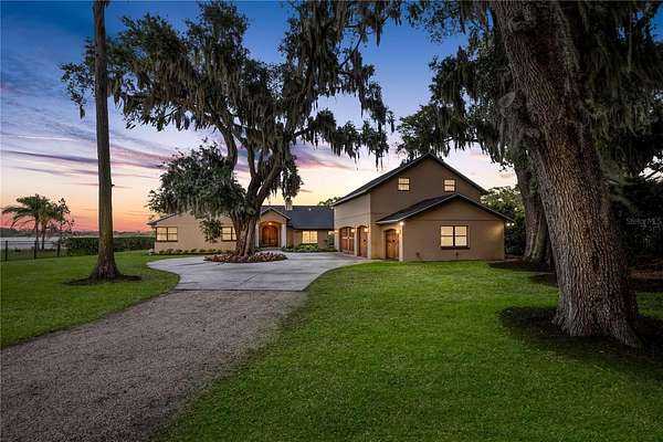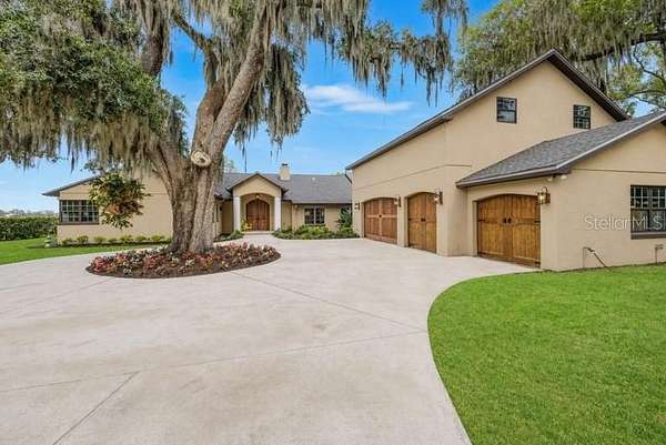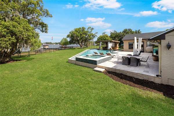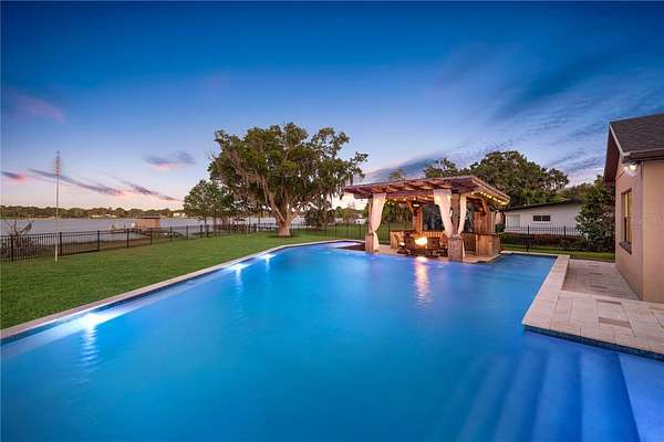 Positioned on the coveted shores of Lake Jessamine—widely regarded as one of Orlando’s premier private lakes for its exceptional water quality and elite-level boating, skiing, and wakeboarding—this expansive lakefront estate delivers a rare combination of scale, privacy, and true lifestyle appeal. Set on approximately 3 acres of high and dry land, the property features a semi-circular driveway, 3-car garage, and a thoughtfully designed floor plan oriented to capture sweeping lake views from the kitchen, living room, primary suite, and an additional bedroom. The dining room and living room are seamlessly connected and flow directly into the kitchen, creating an open, functional layout ideal for both everyday living and entertaining. The kitchen is outfitted with custom cabinetry, granite countertops, stainless steel appliances, a premium Thermador range, and pot filler, anchoring the home’s main living space. A dedicated game room with a butler’s pantry adds another layer of flexibility and entertainment potential. The oversized primary suite offers a private retreat with panoramic water views, a large walk-in closet, dual granite vanities, soaking tub, and glass-enclosed walk-in shower. Outdoor living is elevated with a resort-style pool featuring LED lighting, an expansive entertainment area complete with refrigerator, firepit, and a projector with large screen, plus overhead misters for year-round comfort. A private dock provides direct access to the lake, allowing full enjoyment of its clean, recreational waters. Conveniently located just minutes from Downtown Orlando, major roadways, shopping, dining, and Orlando International Airport, this property offers a compelling blend of luxury, accessibility, and true Central Florida lakefront living.
