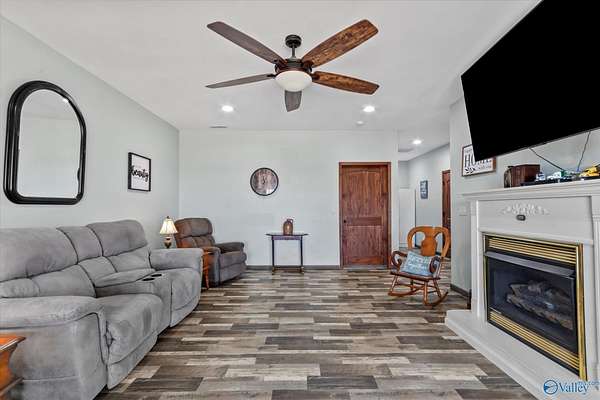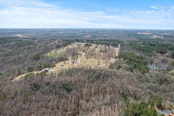 Nestled on 19.10 acres just minutes from Lake Guntersville, this 2018 built home offers exceptional privacy with a long private driveway and abundant wildlife, including frequent deer sightings. The home features two bedrooms, two baths, and an open floor plan filled with natural light, creating a comfortable and inviting living space. A covered back deck provides the perfect spot to enjoy sweeping views of rolling land, beautiful sunsets, and the peaceful surroundings. Additional features include a two car garage, outdoor storage, and partial fencing. This property offers a rare opportunity to enjoy quiet country living while remaining close to lake access and town conveniences.