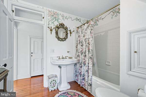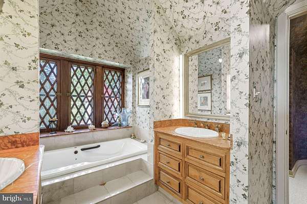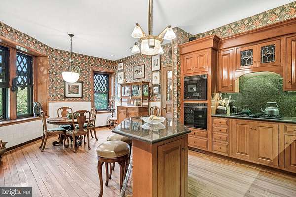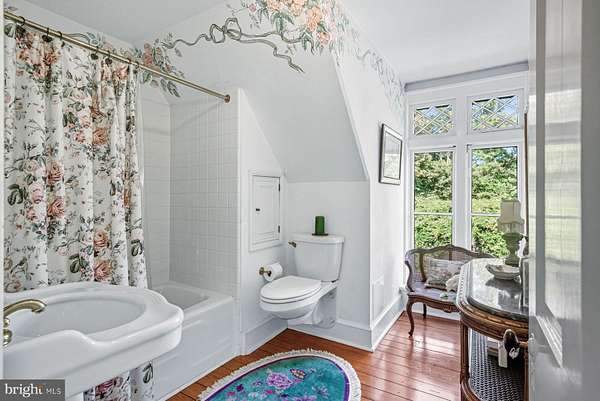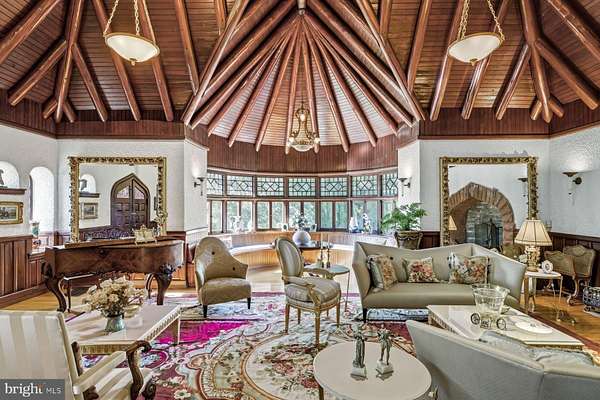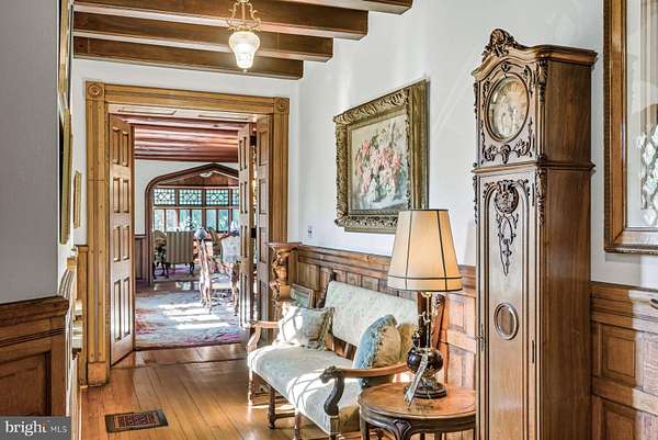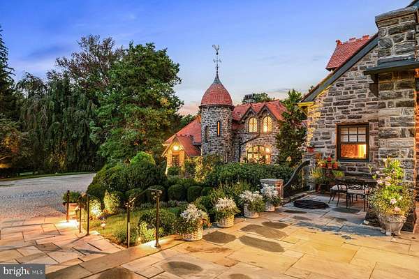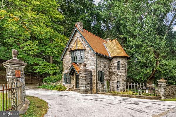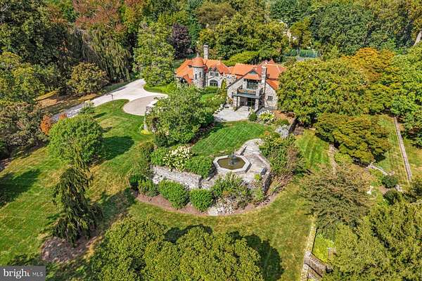 WOW!!! This incredible Radnor estate built in 1882, was once known as Fox Hill Farms and was originally sited on 560 glorious acres at the highest point in Bryn Mawr. Now set on 5 beautifully landscaped private acres with flowering perennials, specimen trees and breathtaking views, the fabulous stone main residence with tile roof, separately deeded charming guest/ gate house and tennis court await their next lucky stewards, with both parcels being included in this listing. The current owners have meticulously restored the original architectural designs and materials, while completely modernizing the infrastructure and amenities of the residences including updated HVAC, electrical systems, new generator and more. Endless features that afford comfortable everyday living and easy entertaining include sun-filled leaded glass arched and eyebrow windows, fabulous wide plank floors, massive mahogany moldings and millwork, gracious entrance foyer, soaring great room ceiling with restored log beams and walk-in Philadelphia brownstone fireplace, expansive dining room with hidden wet bar private office, large cherry eat-in kitchen with prep island, gas cooktop, double ovens, SubZero refrigerator, breakfast room and enormous "icebox" pantry, 2 first floor powder rooms, cozy family room off of kitchen area and a generous first floor guest bedroom suite with full bathroom. The main staircase is dedicated to a spacious second floor Primary Suite with gracious bedroom opening up to 2 balconies with glorious views of the gardens, grounds, terraces, stone walls, flowering pergola and water fountain, 2 customized walk-in closets, sitting room with fireplace, luxurious bathroom with sunken tub, walk-in frameless glass shower and separate commode room. A second staircase leads up to a third bright bedroom suite with bright bedroom and bathroom featuring endless views of the jaw dropping grounds. The dry, partially finished lower level offers a potential 4th bedroom with full bathroom, exercise area, laundry room and lots of storage The stately guest/ gate house also offers private living or working spaces with a potential 5th bedroom, full bathroom, kitchen and living/ dining room. This incredible, one-of-a-kind historic oasis offers endless opportunities for expandable spaces to suite any buyer's desires. Close to renowned Radnor schools, and private schools and universities, a wide variety of recreational facilities, clubs, all forms of transportation, wonderful restaurants, Philadelphia Airport and more. A rare jewel!! LOW TAXES!