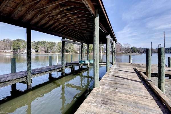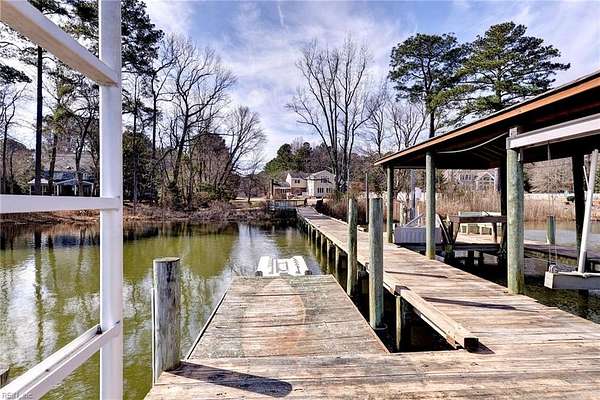 Waterfront living at its finest on Chisman Creek! Set on 3.66 acres, this property offers a private dock with covered boat lift, jet ski floating dock, and additional boat slips—perfect for enjoying life on the water. The home features both 1st and 2nd floor primary suites overlooking the creek. The spacious 1st floor primary includes its own sitting area, large bath with jetted tub, walk-in shower, dual sinks, and walk-in closets. An additional 1st floor bedroom offers flexibility for guests or office space. Designed to maximize water views, the home includes two family rooms overlooking the creek, an eat-in kitchen with creek views, and a large formal dining room. With 5 bedrooms and 3.5 baths, there is room for everyone. Enjoy the outdoors from the composite decking, and take advantage of the detached two-car garage and expansive acreage. Fresh paint and new carpet!