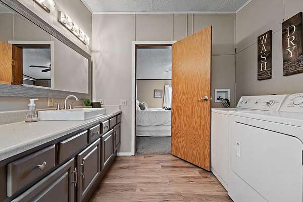 - Ceiling Fan(s), Double Vanity, His and Hers Closets, Kitchen Island, Pantry, Recessed Lighting, Soaking Tub, Vaulted Ceiling(s), Walk-In Closet(s)