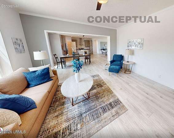 Exceptional value per square foot in a private, pristine natural setting. 2.44 -acre high-elevation homesite with no flood insurance required. Conventional 4-bedroom septic permit in place. Cleared, pad-ready lot with underground power and high-speed fiber internet await. The property sits high and dry, performing well during heavy seasonal rains. Less than one mile from new industrial park and employment centers - yet serenely situated amidst pines and oaks on a quiet private drive. Convenient access to I-95; within 30 minutes of Beaufort, Bluffton, Okatie, Ridgeland, Hampton, Walterboro, Parris Island, and MCAS Beaufort. Proposed 2,300+ sq ft, 4BR/2.5BA energy-efficient home, boasting 9ft ceilings, open concept living - offering outstanding quality and value at this price point