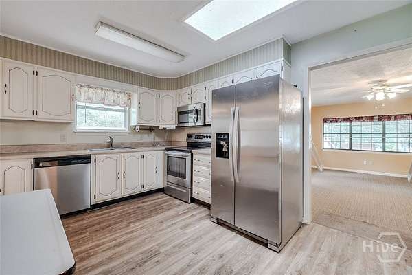 - Ceiling Fan(s), Entrance Foyer, Main Level Primary, Pantry, Pull Down Attic Stairs, Separate Shower, Skylights, Vanity