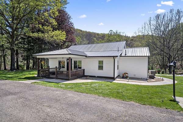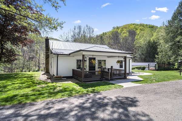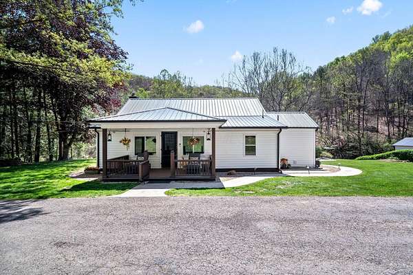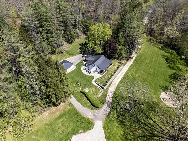 Discover the ultimate escape! 117.9-acre property, boasting mountain views, lush trees, serene streams, and stocked pond. This newly renovated modern farmhouse features 3 bedrooms & 2.5 bathrooms. Cozy fireplace that adds warmth and charm to the living space. Generous walk-in pantry. Tranquil covered porch, ideal for relaxing and soaking in the natural beauty surrounding you. Stay connected with newly installed high-speed internet and indulge in the modern conveniences of newly upgraded bathrooms, including a heated toilet/bidet. The property also features a newer metal roof on both the house and garage. Includes a versatile farm building, charming bridges, and a fire pit for memorable gatherings. Near the Elks Golf Course and State Park. Additional livable, heated and cooled, building that offers potential as a rental unit, complete with a full bathroom and laundry facilities and wood burner. Don't miss this rare opportunity to own a slice of paradise or a hunters dream!