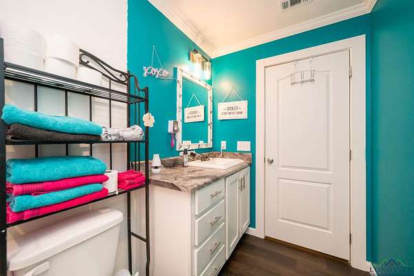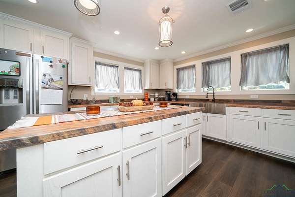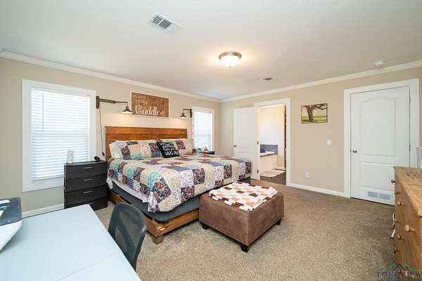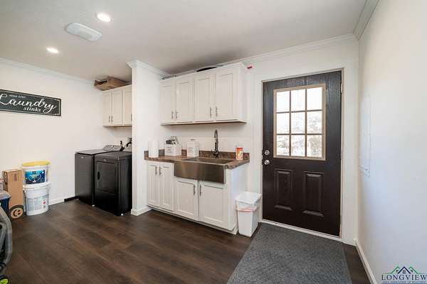 From Harleton head northwest on TX- 154 for .3 miles. Turn right on FM 450. After .1 miles turn right onto FM 1968. Drive 1.2 miles then take a left onto Edmonson Rd. In .2 miles, turn left on Coppedge Smith Rd. Asphalt turns into a PR. Drivewy on right.
