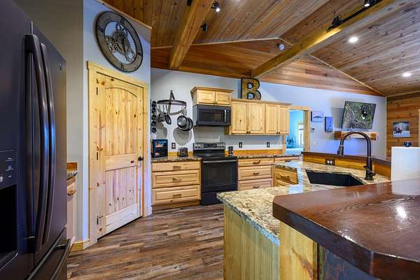 548 Spruce Hollow Trails, Kalispell, Montana - 15-Acre Retreat with No Covenants, No Zoning, No HOA! VA assumable loan for qualified Veterans 2.25%, $30k credit at closing for prepaid and other closing costs. Experience the charm of this delightful residence nestled on 15 acres of pristine land just outside Kalispell, Montana. This home blends modern elegance with Montana's natural beauty, offering a peaceful retreat minutes from Kalispell's shopping, dining, medical facilities, and regional airport. The inviting living room boasts a vaulted wood ceiling and a cozy wood stove, creating an airy, warm space for relaxation. The kitchen features shaker cabinets, durable granite countertops, and a large island perfect for gatherings. Enjoy a convenient laundry room and a spacious basement for added versatility. Outside, a spacious deck, covered patio, fenced yard, large shop with carport and woodshed, elevate your Montana lifestyle, ideal for wildlife viewing and outdoor recreation. A short drive to Glacier National Park and all the outdoor recreational areas. The expansive, unfinished basement at 548 Spruce Hollow Trail, Kalispell, Montana, offers incredible potential for customization. Prepped with plumbing and electrical, it's ready to finish to your vision. Designated spaces include a utility room, laundry room, spacious family room, bathroom, bedroom, and a bonus room plumbed and wired for a wet bar. This provides a versatile opportunity to create a personalized retreat or additional living space. Perfect for expanding your Montana dream home! The house is wired for a backup generator and comes with a 13k generator. A 1,200 sq ft shop (30 ft x 40 ft) features 14 ft garage doors, full insulation, two heat sources, and 220V wiring. Includes a 100-gallon air compressor, workbenches, and a 40 ft covered outdoor storage area along the building's length. Ideal for heavy-duty tasks with ample space and equipment. Includes plow truck and 100 gallon air compressor