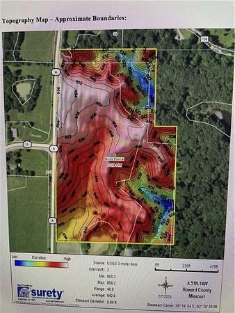 25.5 acres, prime hunting land with deer and turkey, as well as squirrel, rabbit, and quail. 3500 acre Rudolph Bennitt Conservation Area with a 48 acre lake with good populations of bass, crappie, and catfish. There are also horse and hiking trails and a 100 yard rifle range is about a mile away. There is one small pond on the property and there is shared access with another. The entire Western property line is along State Road A. Located in Howard County, just South of Higbee, MO. Easy access to Booneville, Columbia, Kansas City, and St. Louis. Excellent homesite opportunity. Approximately (18) acres of tillable land for crops or pasture as well as several areas ideal for food plots. There is county water and electricity already present on the property. Hunter's cabin/shed/tiny home can be made livable, City water and electricity hooked up and drains to a lagoon system. Water meter is right side of entrance to acreage, electric meter on pole by cabin. Easy upgrade of living structure with everything on site.