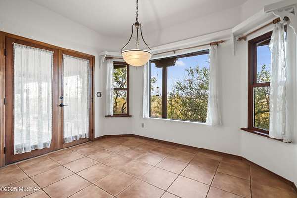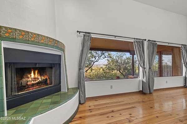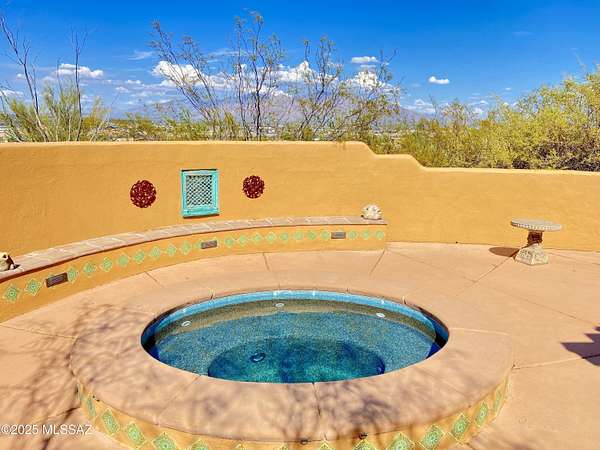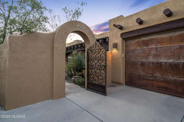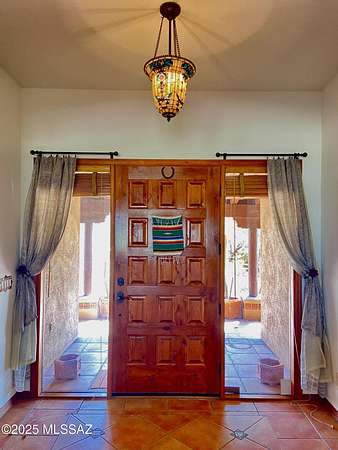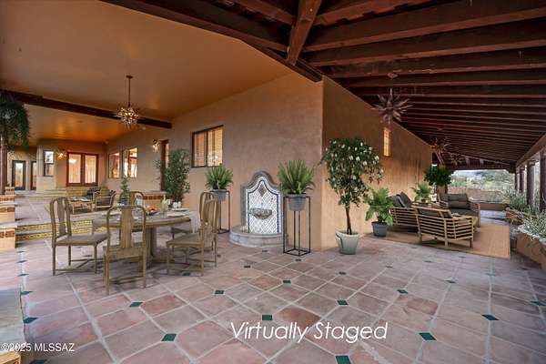 Experience the magic of the desert in this Santa Fe-style retreat on 3.3 private acres near Saguaro National Park. Surrounded by mountain views and natural beauty, this gated estate offers peace, privacy, and a true connection to the Southwest. Relax on the wrap-around porch, soak in the Pebble Tec spa, or unwind in the screened sitting room while listening to desert birds. Inside, warm wood, tile floors, and expansive windows frame breathtaking vistas. The gourmet kitchen is perfect for gathering, while the elegant primary suite with French doors, stained-glass accents, and spa-like bath creates a serene escape. With guest accommodations, office/den, and timeless Southwest charm, this home offers not just a place to live--but a lifestyle.