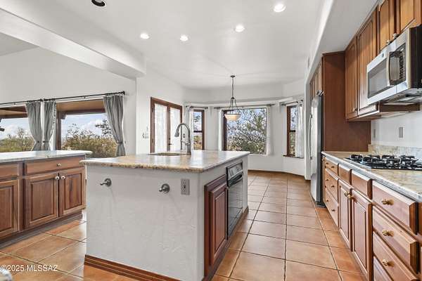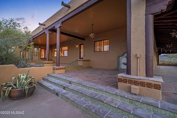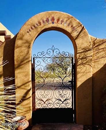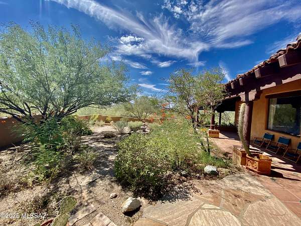 Experience the magic of the desert in this Santa Fe-style retreat on 3.3 private acres near Saguaro National Park. Surrounded by mountain views and natural beauty, this gated estate offers peace, privacy, and a true connection to the Southwest. Relax on the wrap-around porch, soak in the Pebble Tec spa, or unwind in the screened sitting room while listening to desert birds. Inside, warm wood, tile floors, and expansive windows frame breathtaking vistas. The gourmet kitchen is perfect for gathering, while the elegant primary suite with French doors, stained-glass accents, and spa-like bath creates a serene escape. With guest accommodations, office/den, and timeless Southwest charm, this home offers not just a place to live-but a lifestyle.