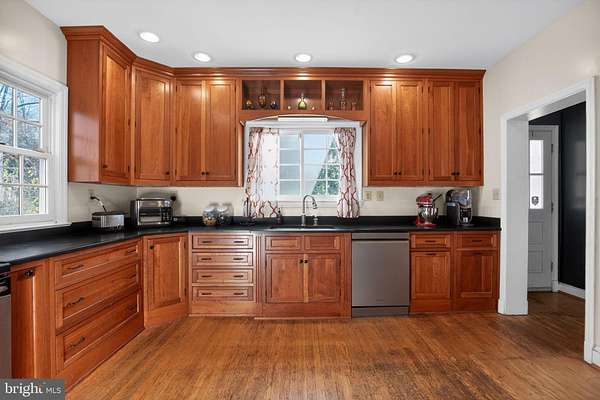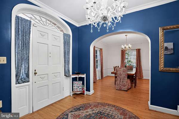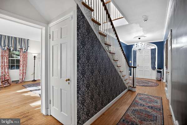 Welcome to Boxwood Manor, circa 1940. Step inside this truly elegant all-brick center hall Colonial, rich with original character and timeless craftsmanship rarely seen today. From the breathtaking foyer with crystal chandelier and original wood staircase to the nine-foot ceilings, hardwood floors throughout, and classic moldings, this home blends historic beauty with thoughtful modern updates. The main level offers generous living spaces, including a gigantic family room with wood-burning fireplace and built-in shelving, opening to a covered side porch-perfect for relaxing or entertaining. The custom kitchen by Cords Cabinets is both functional and refined, complete with eat in nook area complemented by stainless appliances and a dishwasher installed in 2024. A formal dining with butlers pantry and rear covered porch overlooking the yard you have to see! The Main level is perfect! The lower level features an ultimate gaming and recreation room with upgraded lighting and outlets (2025). Upstairs, the home continues to impress with spacious bedrooms and bathroom renovated in 2024. Situated on over 2 beautifully landscaped acres, nearly all fully fenced, the property offers exceptional outdoor amenities: a circular driveway with two gated entrances, front and side porches, heritage plantings soon to be in full Hallmark-worthy bloom, and ample space for extensive gardening. Additional highlights include a 33-foot above-ground pool (installed June 2024), a detached two-car garage with workshop and upper storage, a barn with sliding door and loft storage, a fenced chicken coop, and a separate concrete pad ready for an additional structure or outdoor entertaining area. Major updates include a roof (2022), windows (2006), septic system installed 2006 and serviced 2024, fireplace inspection (2024), HVAC serviced 2025, and Nest thermostat (2024). This is not a cookie-cutter home-Boxwood Manor is a rare opportunity offering space, history, privacy, and character, and it will not last long.