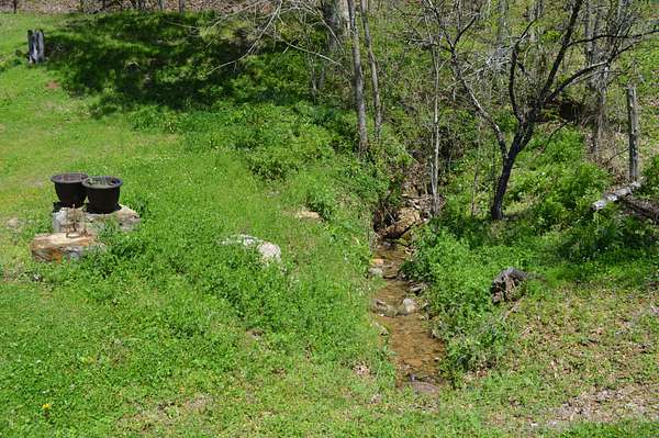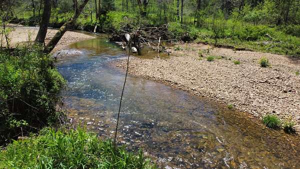 This 3 bedroom, 1 bathroom home on 7 acres with a creek is a rare find indeed, offering the perfect blend of luxury, comfort, and natural beauty. The creek creates a picturesque boundary, inviting exploration and providing a serene backdrop for daily life. This charming home exudes a timeless appeal, boasting both hardwood and carpeted floors that seamlessly blend style with comfort. As you approach the property, notice the classic design and inviting front porch hinting at the warmth and character found within. The living room beckons with its cozy ambiance, boasting plush carpeting that invites you to sink your toes into its soft fibers while relaxing. A cozy eat in kitchen offers the perfect spot to enjoy casual meals. Down the hallway, you'll find the bedrooms, each with the beautiful well maintained hardwood flooring. A natural spring gushes forth with pristine water, its source a mystery hidden within the earth.The spring provides a constant supply of refreshing water.