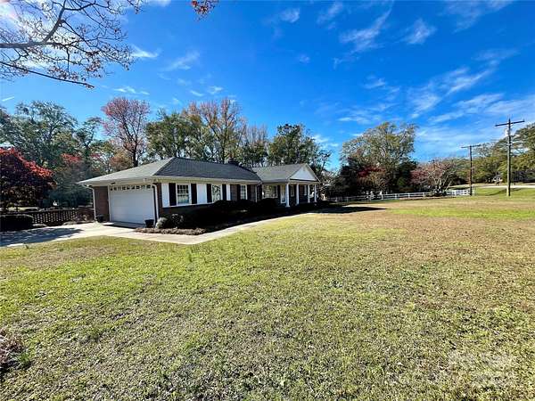Welcome to your dream home! This stunning 2,576 sq. ft. brick ranch offers the perfect blend of comfort and functionality, featuring three spacious bedrooms and three well-appointed bathrooms. Enjoy the warmth of the heated sunroom, ideal for relaxation or entertaining. Step outside to discover a charming slab courtyard, perfect for outdoor gatherings. The property has a 448 sq. ft. basement, providing additional storage. The attached two-car carport features remote automatic garage doors for convenience. You'll also appreciate the expansive 1,440 sq ft detached heated shop, complete with a 656 sq. ft. finished loft, half bath, and kitchenette-an excellent space for workshops, projects, or recreational activities. Situated on a sprawling 2.6-acre corner lot in the beautiful town limits of Heath Springs with road frontage on two sides; endless possibilities. Don't miss this opportunity to own a versatile and inviting home with ample space for all your needs! Schedule your showing today!