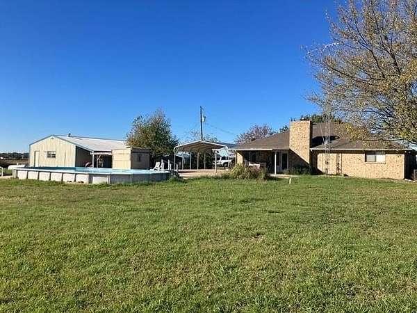 Motivated Seller!! Step into true secluded country living when you enter the gate of this property. Mature Bradford Pear trees line the driveway of this beautiful ranch style home. This home features a new roof on both house and barn with transferable warranty.. Home is located on a 1.99 acre tract right off FM 512. This home features two living areas with a wood burring fireplace in the living room, large den, large master bedroom with separate tub, shower, and double sink. Detailed pan ceilings add that custom look on the living room, dining area, and master bedrooms. Outside, the views of the rolling hills are spectacular. In addition to those views, there is a 2400 sq ft insulated heated and cooled shop guesthouse with a full bathroom, 4 covered parking spaces, an observatory shed for stargazing, two additional sheds for additional storage, and a pole barn. The back yard also features a swimming pool with a large covered patio out the back door.