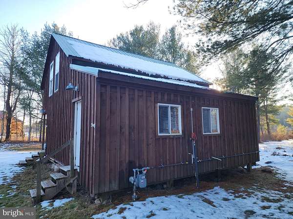 Est $713/moRecreational use wood frame cabin with detached garage and pond on 4.7 acres. There is public water to property but it cannot be hooked up to the cabin unless public sewer is installed or proper approved septic system is installed and approved by the Township. There is an out house on a tank that can be used but must be pumped out. Cabin has roughed in plumbing for future bathroom and kitchen use. Rear two tier deck