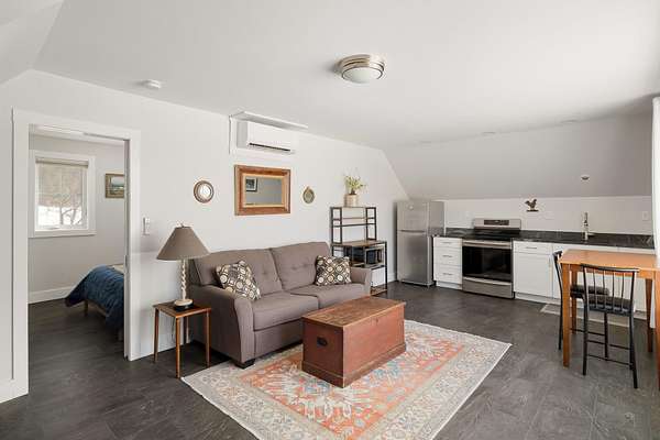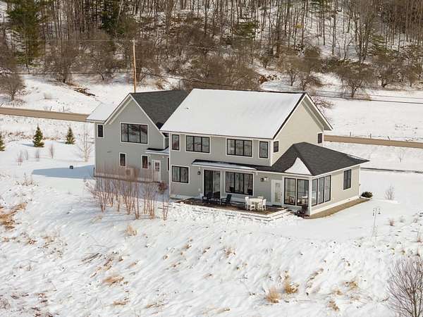 Nestled in the heart of the Green Mountains, 549 Loomis Hill is a contemporary modern farmhouse on over two acres. This architectural retreat masterfully brings the outdoors in, with every room oriented to capture natural light and the serene beauty of the Vermont landscape. Step through the french doors in the main residence to find airy nine-foot ceilings, oak hardwood flooring, a plethora of built-ins, and an inviting fireplace that serves as the home’s centerpiece. Step onto the back deck to find a newly installed electronic awning, providing the perfect vantage point for morning coffee while watching deer, wild turkeys, and red-winged blackbirds wander through an orchard of mature apple trees. The property’s versatility is unmatched, featuring an attached 2 car garage with a fully equipped one bedroom apartment above it. This bright, private space has a strong rental history and offers its own washer and dryer, eight-foot ceilings and sleek granite countertops. Sustainably minded, the electrical panel is pre-configured to expand the solar integration and dual EV outlets, ensuring you are ready for the future. Location is everything, and this home places you minutes from historic Downtown Waterbury, the Waterbury Reservoir, Stowe’s world-class dining and shopping, and the legendary slopes of Stowe Mountain Resort. Between the premium location and a layout that balances modern luxury with rural charm, this is a rare opportunity to own a piece of Waterbury’s finest. Open house this Sunday April 12th from 11am-1pm!