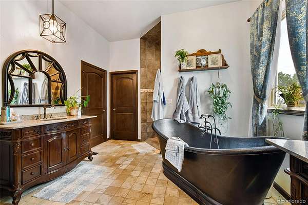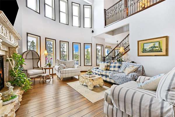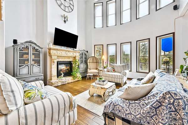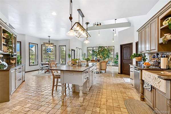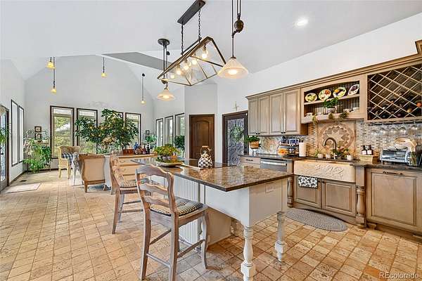 Originally designed to live completely off-grid, this custom-built home is now connected to the power grid while maintaining Gold LEED certification and exceptional energy efficiency. Built with SIP panel construction, R40 insulation, triple-pane argon gas windows, and dual geothermal systems for heating and cooling, the home also features 25,000-watt solar panels engineered for snow load and high wind resistance. Interior Highlights -10 to 20-foot ceilings throughout, Fossilized bamboo flooring and travertine tile, Arched 12-foot custom wood and wrought iron front door, Formal dining room with coffered tray ceiling and 10” wood column, Expansive living room with 20-foot ceilings, upper loft, and chiseled marble double-sided fireplace, Chef’s kitchen with custom cabinetry, solid surface recycled countertops, Thermador 6-burner glass induction cooktop, built-in wine and plate racks, Vaulted morning room with 20’ beamed ceilings and full-height windows