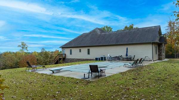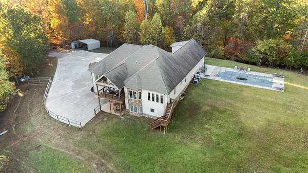 Priced below recent appraisal! MOUNTAIN VIEWS, PRIVACY, AND DUAL LIVING QUARTERS AWAIT YOU Nestled atop a NE Bradley County hill on 28 wooded acres, this stunning estate offers the perfect retreat for a multigenerational family-complete with breathtaking mountain views and unmatched privacy. Step Inside and Be Captivated From the moment you enter, the panoramic view from the living room will draw you in. The open-concept living, kitchen, and dining area is ideal for entertaining. Cooking becomes a joy with abundant granite counters, a spacious bar, custom cabinetry, and a large gas range. Savor your morning coffee or evening meal on the covered back deck while soaking in the serene mountain backdrop. Wake up each day to sunrise over the mountains from your oversized master suite, featuring a luxurious bathroom with dual vanities, a jacuzzi tub, a walk-in tile shower, and two generous walk-in closets. The main level also includes two additional bedrooms with walk-in closets, 1 1/2 baths, a laundry room, an office, and a nearly finished flex room that could easily become another bedroom-all complemented by a two-car attached garage. A Complete Second Living Space Downstairs, discover an entire additional home! The handicapped-accessible mother- in-law suite offers a living room, kitchen, breakfast nook, master bedroom with en-suite bath and walk-in tile shower, laundry room, office, and an extra room that could serve as another bedroom-plus its own one-car garage. Storage and Efficiency The entire home is spray-foam insulated, keeping the attic temperature consistent with the main level. The basement provides ample unfinished space-large enough for a truck, boat, and recreational gear-along with a secure safe room for peace of mind. Outdoor Living at Its Best. Spend summer days by the in-ground pool while enjoying the views, and embrace fall, winter, and spring exploring the woods-perfect for hunting, hiking, or wildlife watching. Your Private Mountain Retreat This estate is truly a must-see for anyone seeking privacy, abundant land, and room for family and guests to live comfortably.