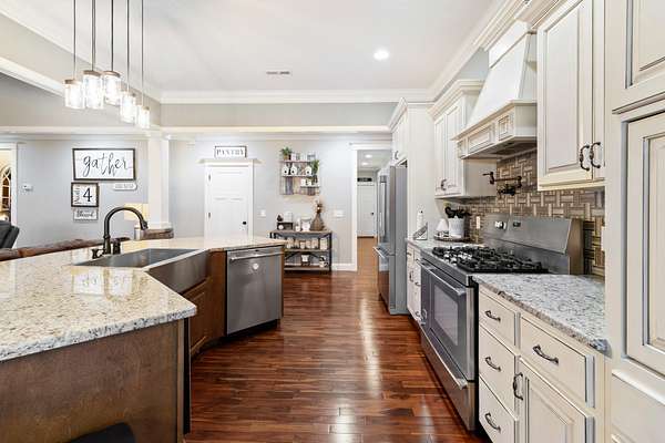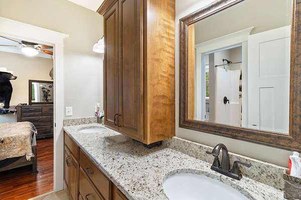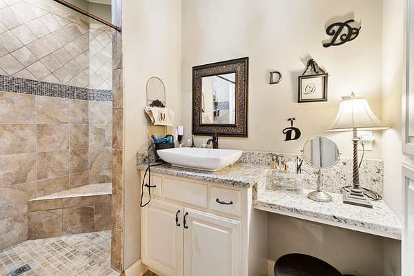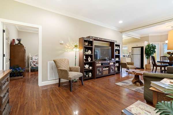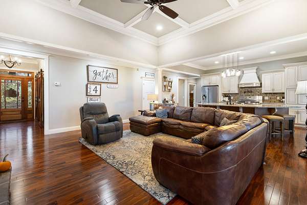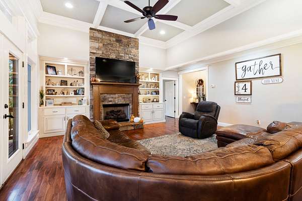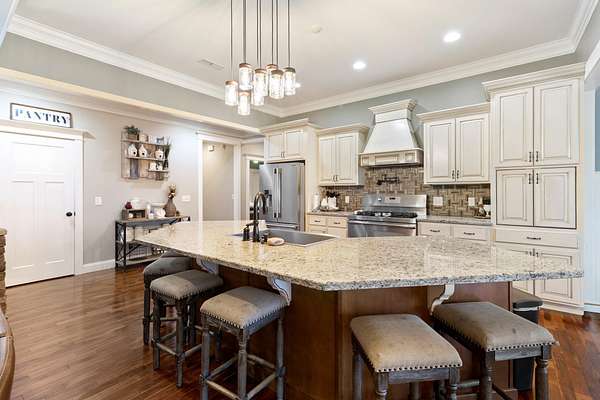 - Bathroom Mirror(s), Bookcases, Built-In Features, Ceiling Fan(s), Coffered Ceiling(s), Crown Molding, Double Closets, Double Vanity, Granite Counters, High Ceilings, High Speed Internet, Kitchen Island, Open Floorplan, Pantry, Separate Living Quarters, Split Bedrooms, Tray Ceiling(s), Walk-In Closet(s), Walk-In Shower