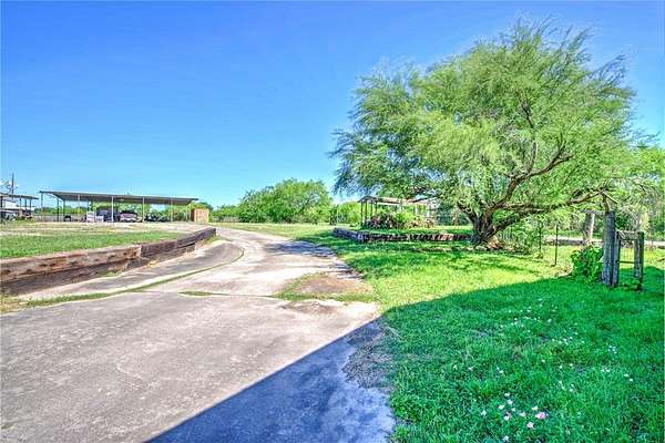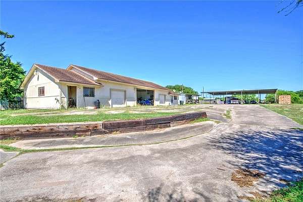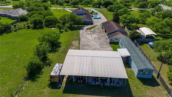 Two story 5 BR 3 full bath one 1/2 bath, All bedrooms on first floor. Pool table, 1/2 bath, player piano and fireplace and small balcony on second floor. Master has ensuite bath, walk in closet, large sunken tub, fireplace, and glass slider out to pool. Living/family room has fireplace, vaulted ceiling, wet bar, big a-- fan. Kitchen has island and lots of cabinets. Heat/AC zoned. Attached 2 car garage with 1/2 bath. Large, covered patio with fans. Separate detached garage with 1/2 bath and a game processing room on one end and efficiency with full bath on the other end. Approximately 2400 sq ft pole barn/carport in back that is perfect for parking your boat. Fleetwood 3 BR 2 bath trailer house in back is occupied and is personal property. Wood fence 3 sides. House septic system has had recent new drain field, detached garage and trailer recent septic tank. Large, fenced area for fur babies. The property for living in comfort and style and hosting BBQs for friends. Calallen schools!!!!!