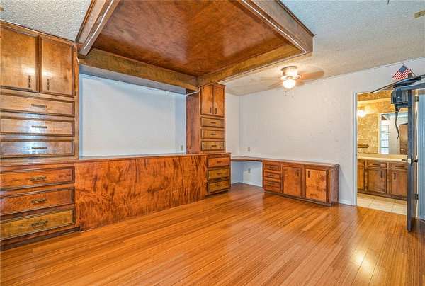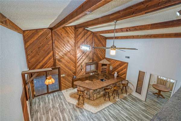 - Cathedral Ceilings, Ceiling Fans, Kitchen Island, Primary Downstairs, Split Bedrooms, Wet Bar, Window Treatments