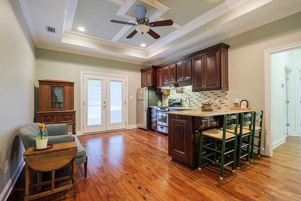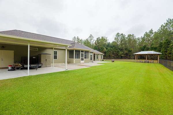 Welcome to this expansive 5-bedroom, 3 full-bath home offering 3,071 sq. ft. of living space on a peaceful 5-acre property. Complete with a 4-car garage, a wired workshop, and an additional storage unit, this home provides plenty of space for vehicles, tools, and hobbies. The heart of the home is the spacious main kitchen, featuring granite countertops, two pantries, and an open layout perfect for cooking and gathering. A flex space with a second kitchen adds even more versatility, making it ideal for guests, extended family, or entertaining. Recent updates bring comfort and peace of mind with a new roof, newer HVAC systems, fresh interior paint in select rooms, and a newly painted exterior. Outdoors, enjoy a fenced-in area complete with a gazebo and a screened porch, offering the perfect setting for year-round relaxation. This property blends privacy, function, and charm--perfect for those looking for both space and flexibility inside and out.