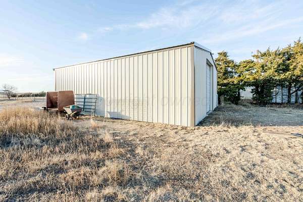 Discover a place where modern comfort meets the peaceful beauty of country living. Set on 6 wide-open acres, this home feels like a true retreat-one where mornings begin on the expansive front porch and evenings end with sunsets stretching over the land. Inside, vaulted ceilings and wood-look tile create an airy, welcoming living space centered around a cozy fireplace. Natural light fills the room, leading into a beautifully renovated kitchen with stainless steel appliances, granite countertops, custom cabinetry, and a farmhouse sink. The adjoining dining area offers the perfect spot for gatherings both big and small. The primary suite is designed for relaxation with a spacious layout, walk-in closet, and spa-inspired bathroom featuring a soaking tub, double vanities, and a large walk-in shower. Additional bedrooms offer plenty of space and charm, and every bathroom has been updated with modern finishes. Step outside and the property continues to shine. A large covered patio invites slow mornings, weekend barbecues, and quiet nights under the stars. The metal barn adds flexibility for storage, a workshop, or extra covered parkingideal for hobbies or outdoor equipment. If you've been searching for a home that offers privacy, comfort, and a place where life naturally slows down, this one is ready to welcome you.