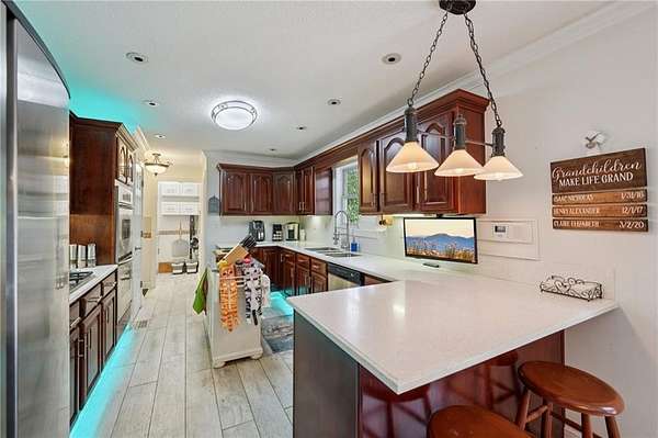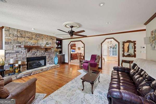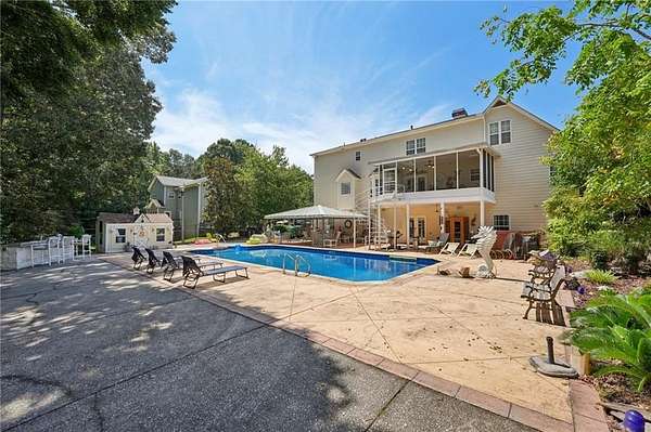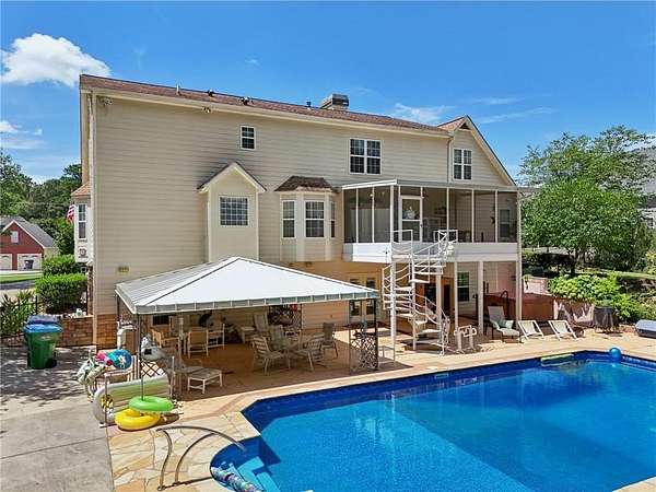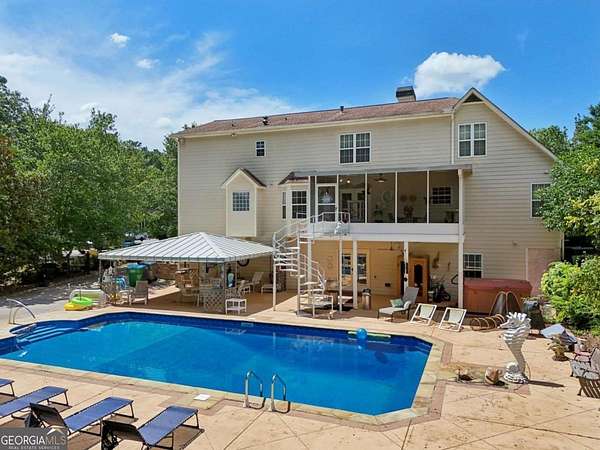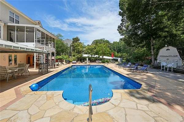 It is a joy to present this incredible, one owner homestead on 2.5+/- acres. Viewing this beautiful property takes some time and is so much fun! Curb appeal abounds with a circular driveway, and tons of poured concrete offering abundant parking space for vehicles, trailers, campers, boats, etc. Warm covered, rocking chair front porch, columns and stone exterior with a wide stone staircase leading to front door. Walk inside to an open family room with built in bookcases and hardwood floors, dining room, kitchen area that is extremely functional and well-appointed including a butler's pantry. Very peaceful 12x20 screened in porch attached to kitchen area for additional seating. Master suite on main level is spacious(18x18) with California closet system in large walk-in closet, and attached master bath is to die for. Heated tile floors, split his/her vanities, LED mirrors with TV inlaid, garden tub, and a resort style, walk-in shower with dual side jets, overhead rain shower, 6 temperature controls, and more. Walk upstairs to what could be a teen suite/in-law apartment. Three large bedrooms, sitting area, and full bath round out a very usable second floor. Travel downstairs to an open, and bright, fully finished terrace level. Immediately greeting you is a fantastic, pub style bar setup, and a very large gathering space with tile floors. Two additional bedrooms and yet another full bathroom, as well as a cavernous laundry room, and incredible storage in the basement. Exit the terrace level into a backyard oasis. Legendary pool parties, family gatherings, and good times were made for this space! 20x40 inground pool with new liner that is 11 FEET deep at its deepest, complete with pool house containing all equipment, and robotic cleaner. Expansive, 24x16 covered space for those that prefer the shade over tanning by the pool. Outdoor kitchen, natural gas grill, jacuzzi spa, and sauna included with this staycation paradise. The good vibes continue after sundown with an abundance of backyard lights to illuminate the space after dark. Regrettably, sometimes duty/responsibility calls, and if you need to get some work done in the backyard, opportunities abound. Multiple storage buildings and workshops allow for near limitless storage, or amazing storage and workspace for an entrepreneur or home business. 16x32 building with loft, 16x16 rear storage building, and backyard is kept secure with an electric gate, and CCTV security system. Great school district, and easy access to interstate 20, major conveniences a short drive, including tons of restaurant and shopping options. I could go on and on, but an in-person visit is a must for this one. Until then, please enjoy our full suite of photographs, aerial shots, and 3-D virtual walk through of this stunning family estate. When you're ready to be wowed, book a tour with your real estate professional, and it would be our pleasure show you this beautiful property!