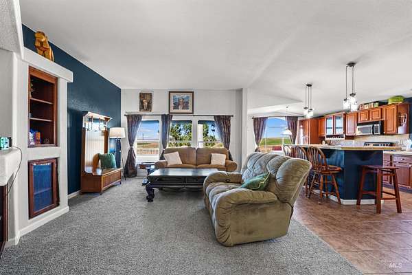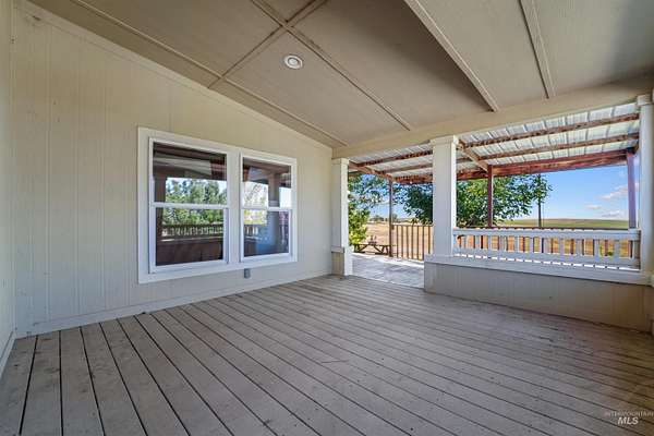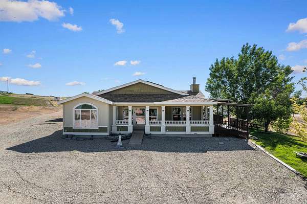 Enjoy the peace and freedom of rural living on this beautiful 2.35-acre property featuring panoramic views of the Owyhee Mountains and surrounding cornfields. This 2,402 sqft manufactured home sits on a permanent foundation and offers easy access to HWY 84, located just 1.3 miles down the road for quick freeway connections. Inside, you'll find 3 bedrooms, 2 full bathrooms, and generous living space throughout, including a large kitchen with a walk-in pantry, two spacious family rooms, a dining area, a breakfast nook, and a large mudroom. A cozy wood-burning fireplace adds warmth and charm to the home. The primary suite features an attached bonus room that's perfect for a home office, nursery, or private sitting area. The ensuite bathroom includes a large soaking tub, a walk-in shower, and a spacious walk-in closet. Step outside to enjoy a wrap-around porch and a large deck, perfect for taking in the peaceful views and sunsets. Additional features include solar panels for energy efficiency, natural gas available at the property line, and a private well installed in 2016. The property offers a wrap-around driveway with two access points from the road and ample parking space for RVs or semi-trucks. There's plenty of room to build a shop or more. Bring your horses, chickens, etc. With no HOA/CC&Rs, you can truly enjoy the freedom this property provides. Your very own oasis on Oasis Rd!