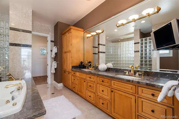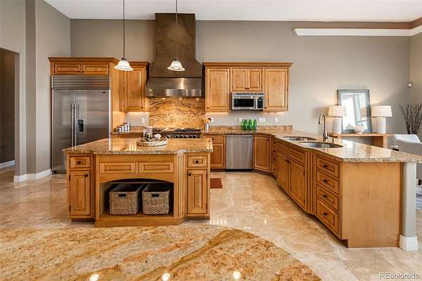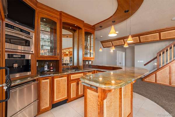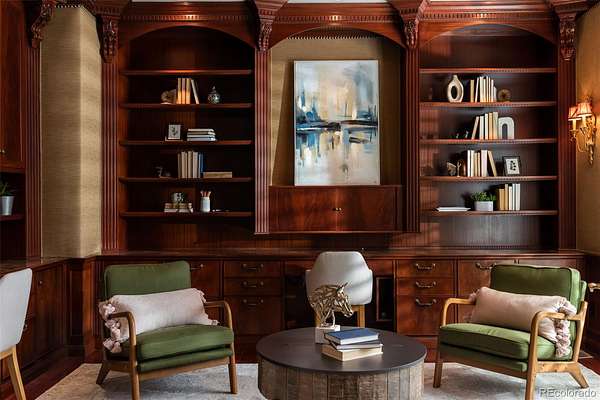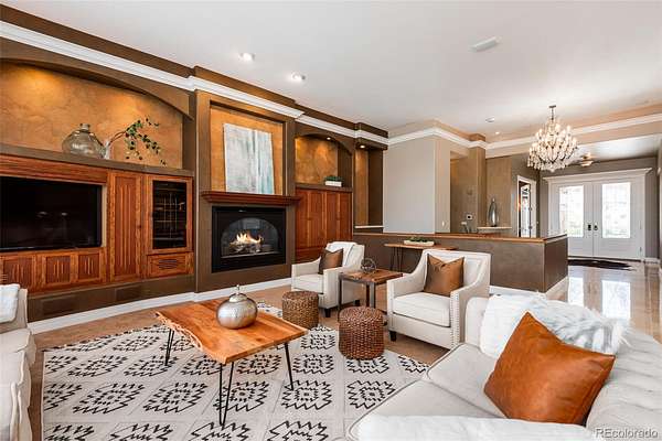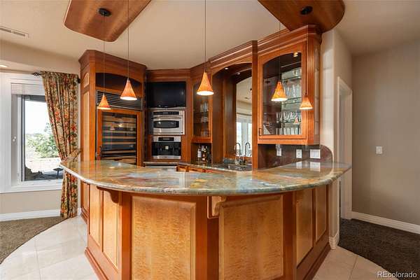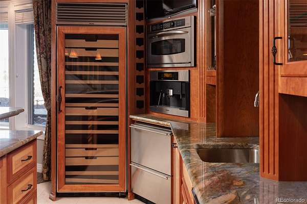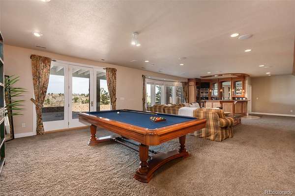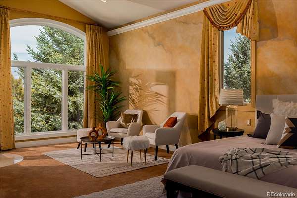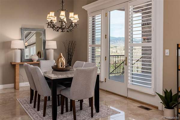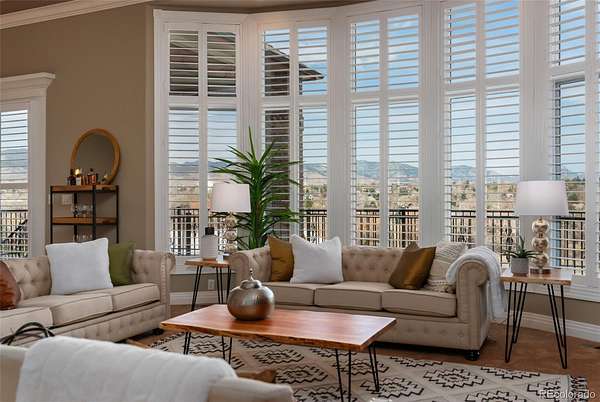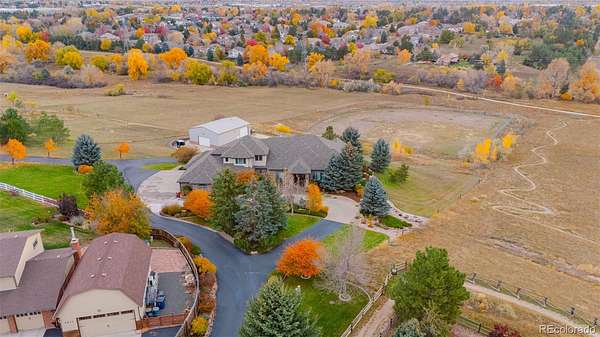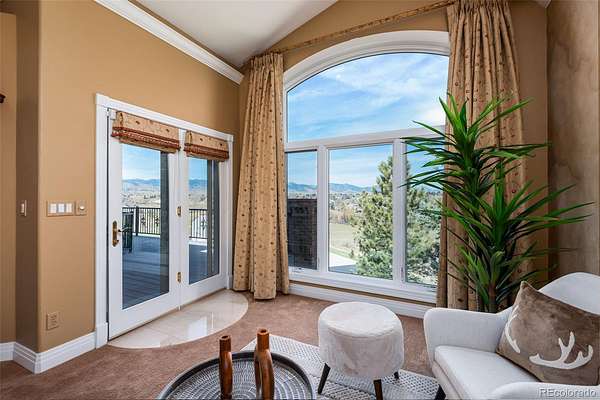Full video, 3D Tour, and all images at 5495eldridgestreet.com. Iconic, peaceful estate expanding over 5 private acres with endless mountain views, overlooking a wooded valley. Enjoy your daily interactions with wildlife in a setting usually only found deep in the mountains, all conveniently located near daily conveniences. Custom craftsmanship and modern luxuries live in harmony inside. The kitchen offers luxurious form and function - Blue Star six-burner range with griddle and Viking Pro hood with warming lights anchor the space, complemented by a Sub-Zero refrigerator, Miele dishwasher, and extensive live edge granite countertops. The main living space is adorned by custom bubinga and koa wood built-ins. Sonos, zoned surround sound and subtle crown lighting set the tone for hosting. All bedrooms host a full en-suite bath and walk-in closets. The study is remarkable, having been featured in design publications - bookmatched flamed mahogany with padded silk walls, copper ceiling, cherry flooring, custom cast hardware and nailhead trim exemplify the level of detail. Outdoor living is equally compelling. From the elevated deck to the patio and hot tub, each space frames breathtaking views. The property’s private ball field adds a rare recreational touch. The second level is ideal for multi-generation living or nanny quarters with a living room, bedroom with en-suite bath and is setup to install a kitchenette. Finished walkout basement with exercise space, bonus/craft room, bedroom with en-suite, media space and wet bar with Viking wine fridge, Miele built-in espresso machine, custom cherry and curly maple woodwork. Two gated entries, circle drive, lush landscape and sprawling acreage complete the setting. Ideal for hobbyists with 4-car garage plus 2,000-square-foot heated outbuilding. This is not simply a residence, it is a sanctuary that celebrates fine living in one of the area’s most beautiful natural settings with convenient access to Golden, Arvada and Denver.