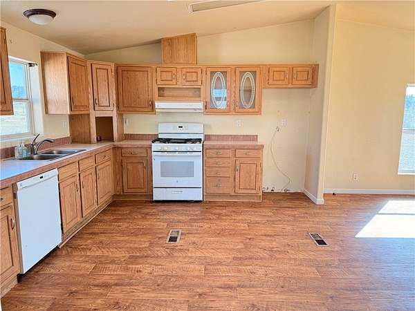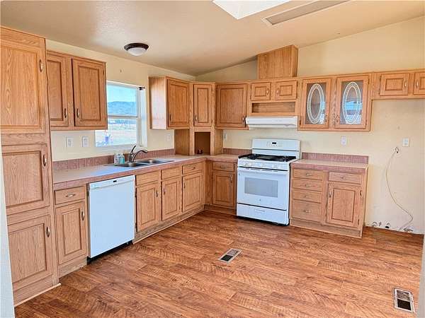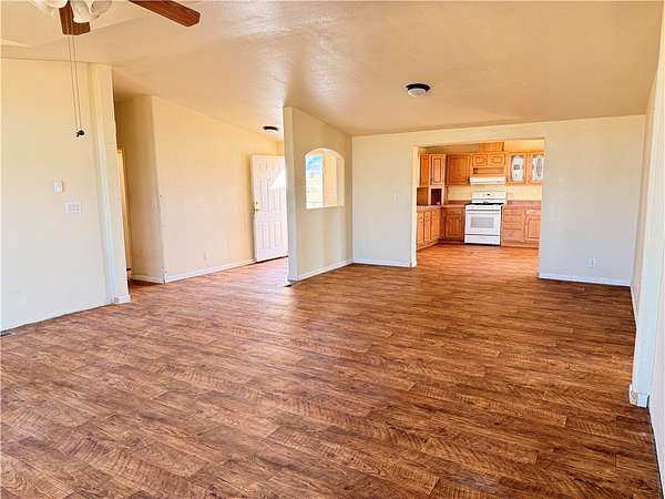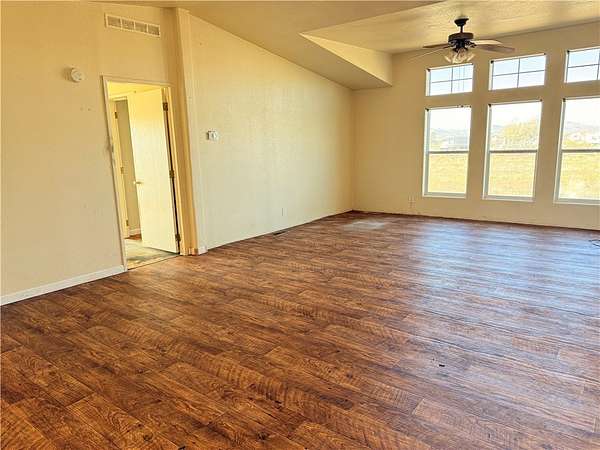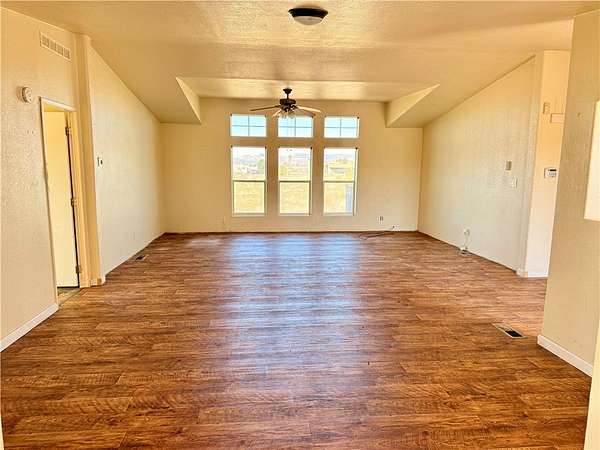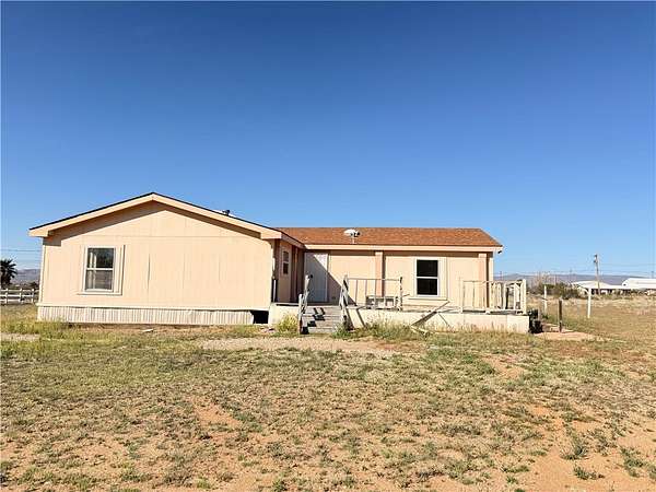 Opportunity awaits on this 10-acre property in Golden Valley! This 3-bedroom, 2-bath triple-wide manufactured home offers plenty of space and potential for the right buyer. The home features both front and rear decks, providing great spots to take in the wide-open desert views and peaceful surroundings. Inside, the layout offers a functional floor plan with generous living space, large kitchen and dining room with a split floor plan ready for your personal touch and updates. The property needs TLC, making it ideal for investors, renovators, or anyone looking to create their own rural retreat. Approximately one-third of the property is enclosed with 6-foot chain link fencing, offering added security and a great start for animals, storage, or defined use space. With 10 acres, there ids ample room for off-road vehicles, large garage, additional structures, or simply enjoying privacy and wide-open space. Conveniently located with easy access to nearby amenities while still offering that desirable country feel. Great potential to rezone and subdivide for investment purposes. Don t miss this chance to own acreage with endless possibilities!