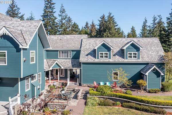 This stunning custom-built Victorian home spans over 8,000 sq. ft. of unparalleled craftsmanship and timeless elegance. Set on 5 sprawling acres, this estate offers both grandeur and comfort, with exquisite wood-accented finishes throughout that highlight the home's rich character and charm.Step inside to discover a world of luxury, featuring a spacious and inviting floor plan designed for both entertaining and quiet retreats. The gourmet kitchen is a true masterpiece, outfitted with double ovens, premium appliances, and custom cabinetry - perfect for culinary enthusiasts. Adjacent to the kitchen is an expansive dining area, ideal for hosting intimate dinners or grand gatherings.The luxurious primary suite is a serene sanctuary, complete with a spa-like ensuite bathroom featuring a soaking tub, a large tiled shower, and dual vanities. Wake up to serene views of the surrounding landscape, and enjoy the peace and privacy of your own retreat. Each bedroom features an ensuite bath complete with heated floors and heated towel racks. Every room in this home is designed with comfort and sophistication in mind, including multiple living areas, grand staircases, and intricate woodwork. The home's expansive windows frame the stunning vistas, allowing natural light to flood the interior and provide sweeping views of the neighboring cranberry farm and surrounding landscape.Located just minutes from the Southern Oregon Coast, this home offers easy access to nearby beaches, dining, and recreational opportunities, all while maintaining a sense of tranquility and seclusion. Whether you're seeking a peaceful estate or vacation getaway, this remarkable Victorian home offers the perfect blend of style, space, and convenience. Don't miss the opportunity to experience the best of coastal living in this magnificent estate.