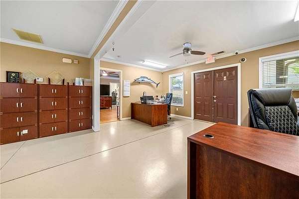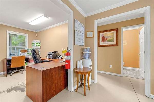 Situated in the heart of South 75 Park, this 2.5-acre trucking lot offers prime access to major transportation routes, including I-75, I-85, I-285, and the Atlanta Airport, all just minutes away. Zoned for Heavy Industrial use, the property is ideal for a variety of industrial applications such as distribution centers, construction supply hubs, utility companies, truck space rentals, truck or bus supply yards, and heavy equipment rental or storage. The property includes a 2,380 sq. ft. single-level, 4-sided brick office building designed for business efficiency. It is equipped to accommodate up to seven offices, along with a general work area, three bathrooms, a full kitchen, laundry facilities, and a large training room. The building also features a front porch, two back porches, and a separate entrance to the training room, offering potential for multi-tenant use. Additionally, the office can serve as a place for overnight stays when working extended hours. The expansive lot includes three designated areas for tractor-trailer and truck parking, making it ideal for truck yard rentals. The yard is fully fenced and includes both a paved section and a gravel area, with a double pass-through entrance providing easy access and circulation for large vehicles. Currently an operating trucking business, this property is shown by appointment only and presents a unique opportunity for businesses seeking a flexible, well-located industrial site in the Atlanta area.