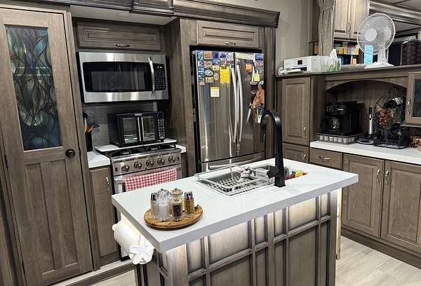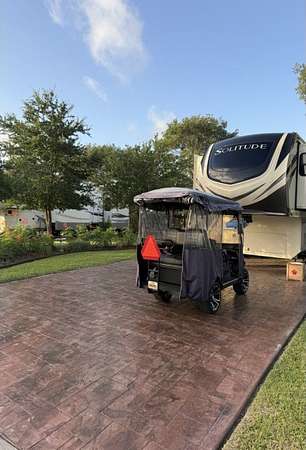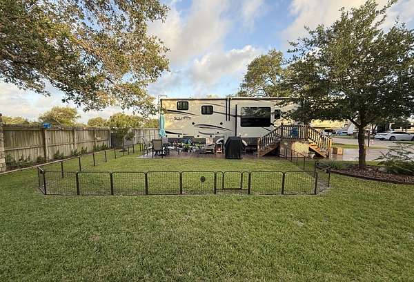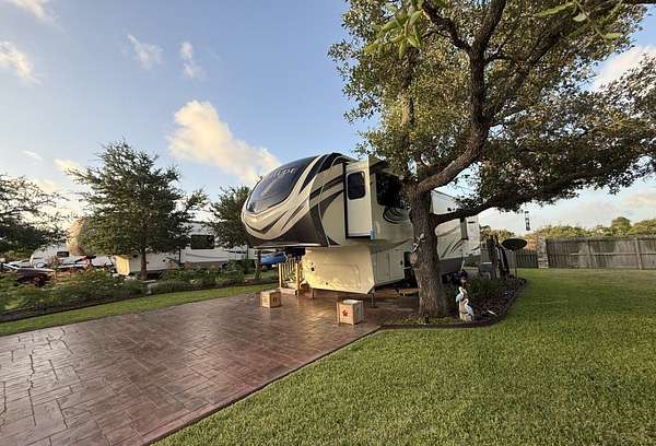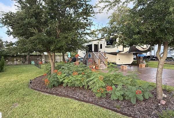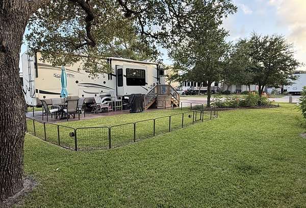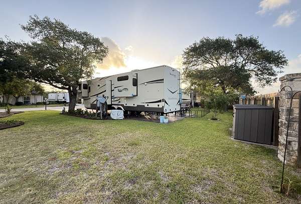 Located in the beautiful coastal town of Aransas Pass, TX. 4158sq' RV lot with 99.9' x 66.5' concrete pad. Lot is equipped with full RV hookups, landscaped with sprinkler system, small dog fenced area, large storage container, patio table with 4 chairs, Weber Spirit E210 gas grill, entry door deck with stairs, 10500 watt electric start gas/propane generator. RV- 2021 Grand Design Solitude 380flr. Front living room, bath and half, central vacuum system, solar back up power, 2 A/C units, gas heat, residential fridge, king bed, elec/gas water heater, Splendide stacked washer and dryer, plenty of heated/cooled underbelly storage and a transferable extended warranty. HOA fee of $115.00/month includes use of pool, hot tub, club house, laundry room, exercise room, game room, pickleball courts, shuffleboard court, 2 dog parks, child play parks, catch and release fishing ponds and trash pick up 6 days/week.