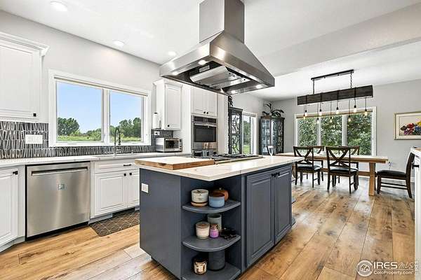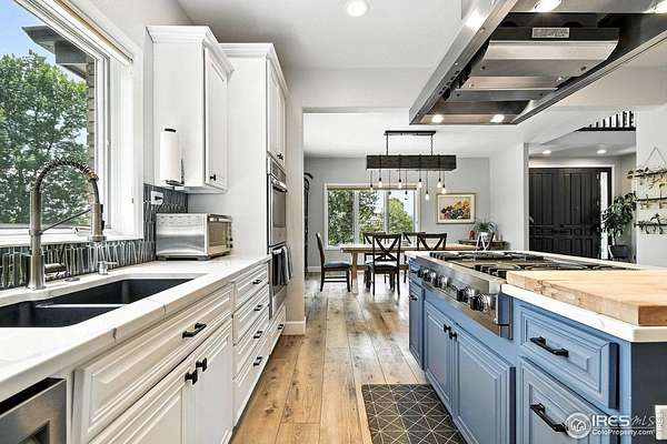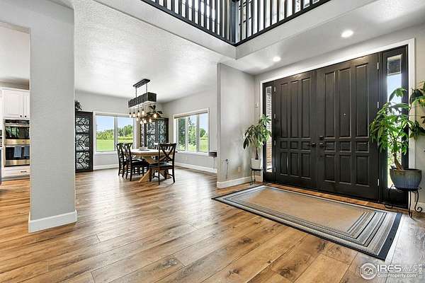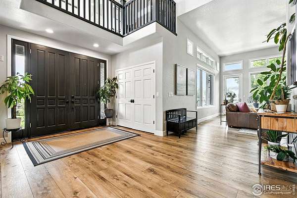 Welcome to Baxter Farm, one of Erie's most prestigious & sought after neighborhoods, known for its large lots, sweeping mountain views, & peaceful, community charm. Perfectly situated near downtown Erie w/ easy access to Boulder & Denver, this location offers a rare blend of small-town serenity & modern convenience. Tucked at the end of a quiet cul-de-sac, this extraordinary estate is a private paradise on 2.3 acres of professionally landscaped grounds w/ unobstructed views of snowcapped peaks. The home's elegant design begins w/ a dramatic entryway, soaring ceilings, & a sun-drenched living room w/ floor-to-ceiling windows framing the majestic views. The gourmet kitchen features a Viking range, double ovens, breakfast bar, & custom pantry. The main level also includes a spacious primary suite w/ a 5-piece bath, two additional ensuite bedrooms, a laundry room, & a walkout patio complete w/ a hot tub for year-round relaxation. Upstairs, a spacious media room w/ wet bar, a private study, half bath, & a view deck offer elevated spaces for work & play. The walkout basement adds over 3,000 square feet of beautifully finished space, including a second media room w/ projection screen, two additional bedrooms, two baths, flex areas, an exercise room, & a 7x15 safe or wine room-all w/ access to a large lower-level patio. Outdoor living is exceptional, w/ multiple decks & patios ideal for entertaining or quiet enjoyment of the stunning surroundings. & for car enthusiasts or creative hobbyists, the oversized six-car garage-w/ extra-tall, drive-through doors that can house boats or car lift offers unmatched functionality & space. This home offers the perfect blend of luxury, privacy, & the quintessential Colorado lifestyle.