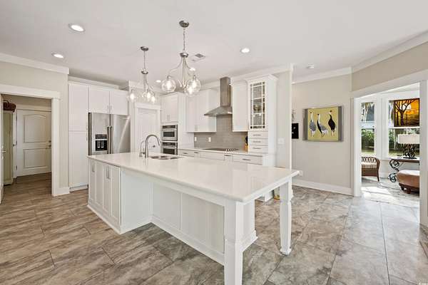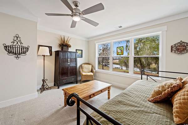 Experience elevated Lowcountry living in this stunning 2022-built residence, perfectly positioned on 3 combined homesites for a total of 1.66 acres overlooking the historic Carolina Gold Ricefields. With three combined lots and an expansive stretch of tidal creek frontage, this property offers unmatched privacy, panoramic views, and room to create the outdoor retreat of your dreams--whether that includes a guest house, pool house, or a custom pool designed to frame the breathtaking water and wildlife vistas. This thoughtfully designed two-story home blends modern craftsmanship with timeless Lowcountry charm. Inside, the main level features an impressive two-story living room with soaring ceilings and a wall of UV-resistant windows that flood the home with light while capturing the sweeping views of the ricefields. The spacious kitchen includes premium upgrades such as a wine fridge, trash compactor, and a reverse osmosis water filtration system. Two bedrooms, including a primary suite, are located on the main level, with an additional guest suite upstairs--perfect for privacy and versatility. Built for both comfort and resilience, the home includes a whole-house generator, on-demand tankless gas water heater, gutter guards, and a dual-function irrigation system that can run from either river water or county water. A central vacuum system adds convenience throughout. Outdoor living is at the heart of this property. Enjoy the stone paver patios at the front and back of the home, an outdoor fireplace and grill, and ample space for future expansions. A 50-Amp exterior outlet provides easy accommodation for electric vehicles. Residents of Litchfield Plantation enjoy access to the community pool and the exclusive private beach house, along with the rich history, charm, and natural beauty that define this iconic community. A rare offering of acreage, modern luxury, and unspoiled Lowcountry scenery--this is a property that truly stands apart.