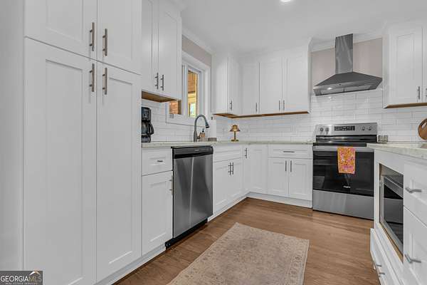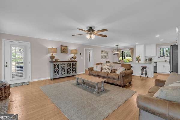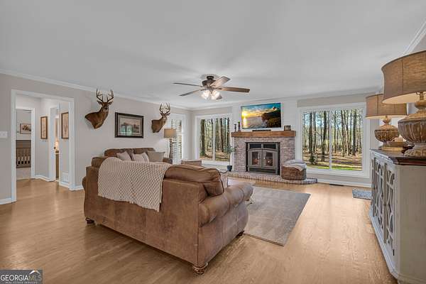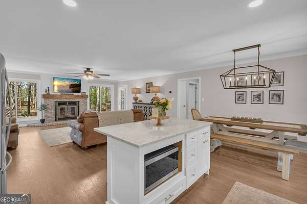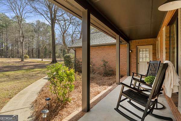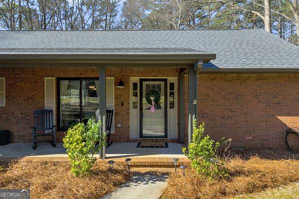 Tucked away on 2.3+ partially wooded acres yet just minutes from Highway 278 and I-20, this updated all-brick ranch offers easy access to Covington, Social Circle, and Madison while providing the space you've been looking for. Covington Square is just 5 miles away and features locally owned shops, seasonal festivals, outdoor concerts, and excellent dining. A long, charming driveway leads you to the rocking chair front porch. The light-filled foyer has shiplap accents and stunning hardwood floors throughout the main living areas. The living room with a masonry fireplace flows seamlessly into the dining area and kitchen, creating a layout ideal for both everyday living and entertaining. The kitchen features granite countertops, tiled backsplash, custom cabinetry, stainless steel appliances, and a large island. A spacious laundry room includes built-in cabinetry for added storage. The owner's suite features a planked pine ceiling, access to the back deck, and an ensuite bath with tiled floors, double vanities, and a walk-in closet. A split bedroom plan offers two secondary bedrooms and a full bathroom. Step outside and enjoy the peace and privacy of your wooded surroundings from the deck or gathered around the fire pit. The fenced backyard and storage shed add even more functionality. With an unbeatable location close to shopping, dining, and entertainment, this home offers the best of both worlds, peaceful living with quick access to everything.
